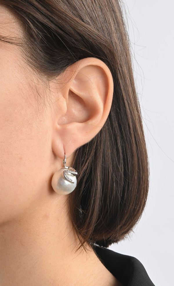 Oro bianco 750/000. Perle da coltivazione in acqua marina dei Mari del Sud. Diametro mm. 16.