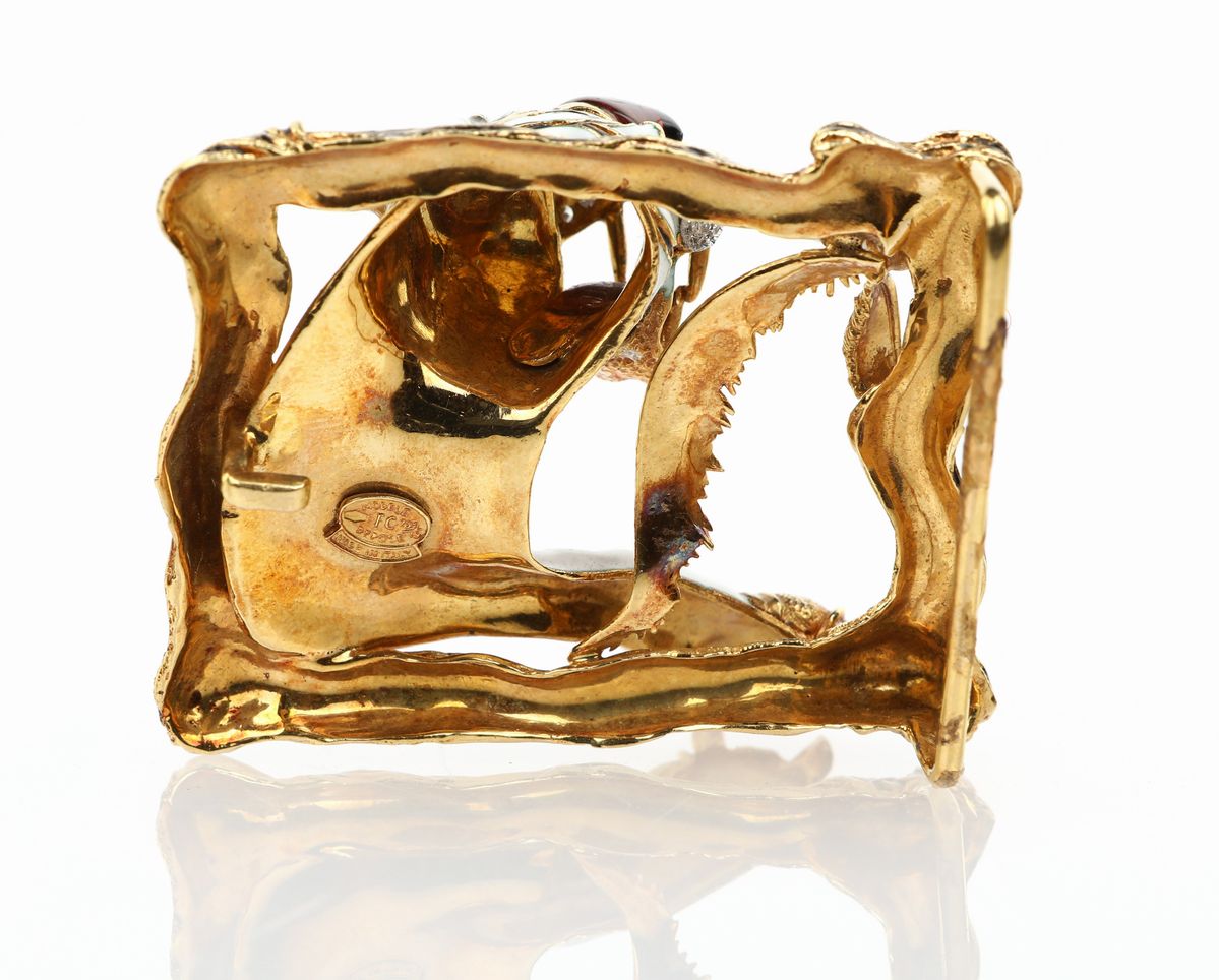 Il gioiello appartiene alla collezione "Bestiario feroce" prodotta tra il 1966 e il 1971 da Frascarolo, contrassegnata da marchio identificativo che ne esplicita autenticità e origine italiana, e che contribuì nei decenni successivi a consolidare il successo del made in Italy nel mondo.