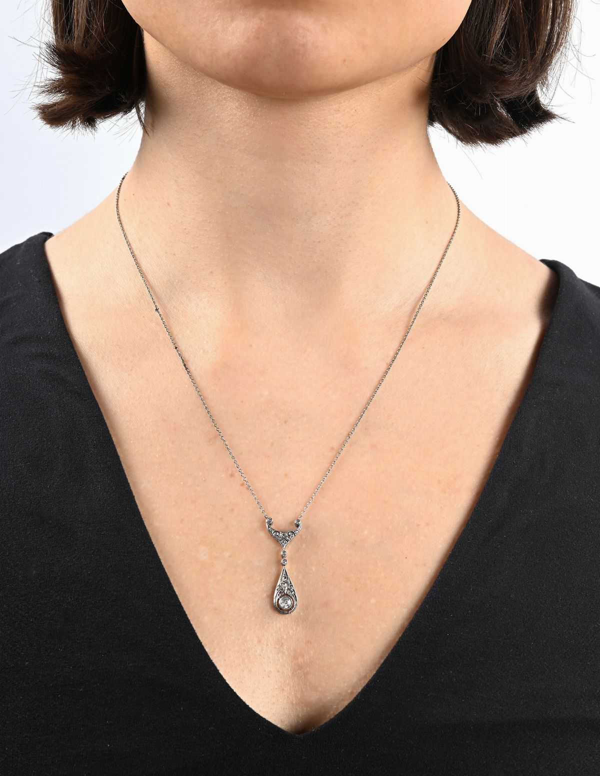 Oro bianco 750/000. Diamanti in taglio vecchia Europa e taglio rosa.