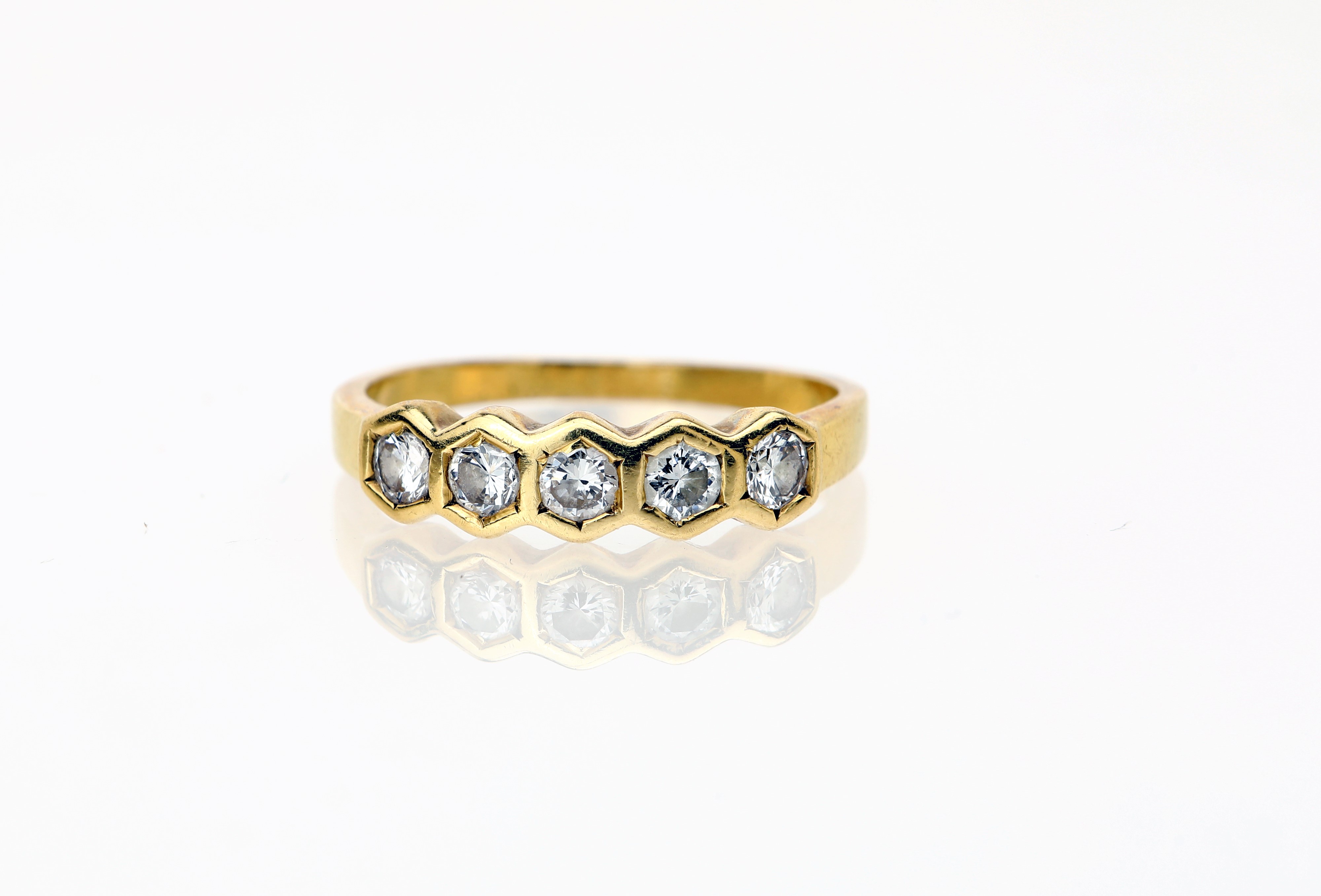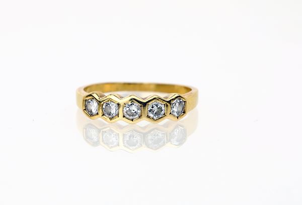 Oro giallo 750/000. Diamanti in taglio rotondo brillante 0,50 ca, prob H VS