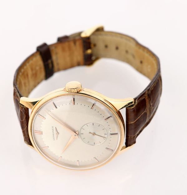 Oro rosa 750/000. Ref. 4915-18, fondello a scatto, quadrante argentato, indici applicati, secondi in basso, lancette dauphine. Movimento manuale n° 9774122, bilanciere monometalico con viti, spirale Breguet.