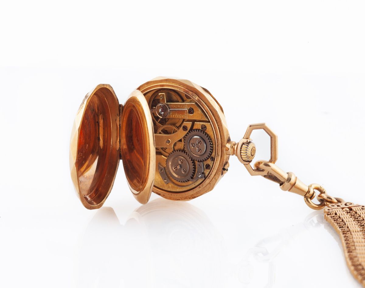 Oudin, orologio monachina con chatlain in oro, Circa 1920