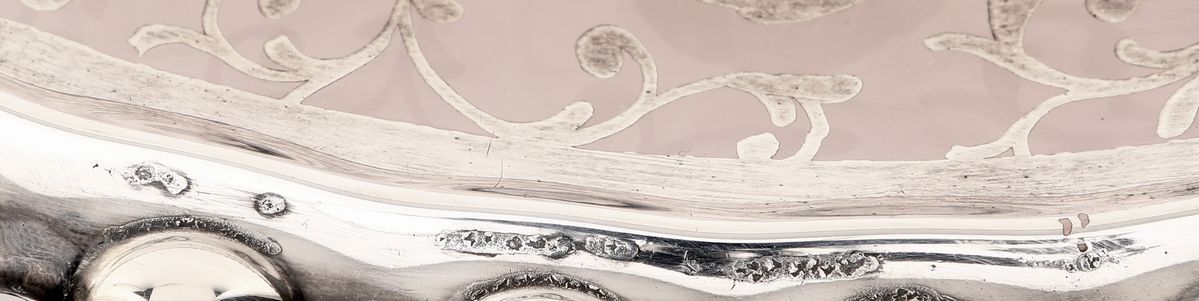 con orlo perlinato e fitta decorazione a tralci fioriti in argento