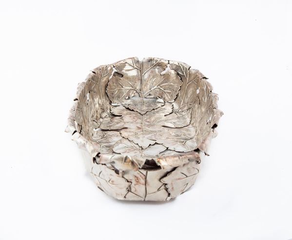 interamente costituito da foglie di vite sovrapposte e ripiegate lungo l'orlo superiore
