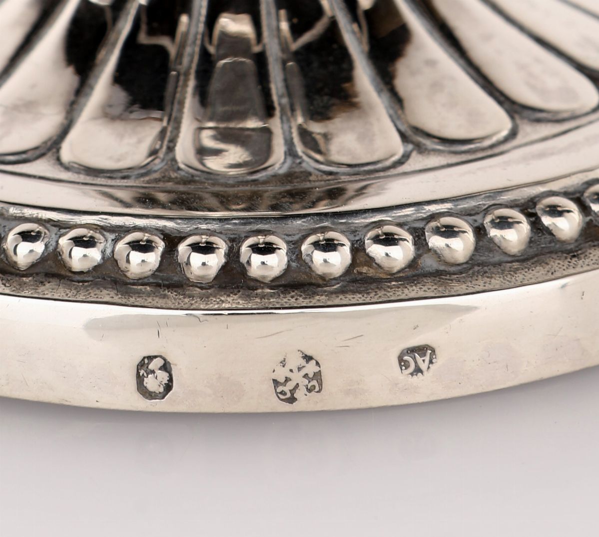 portacandela a vaso su alto stelo decorato da drappi incisi; piede circolare con profilo perlinato. Bollo di ricognizione dal 1815