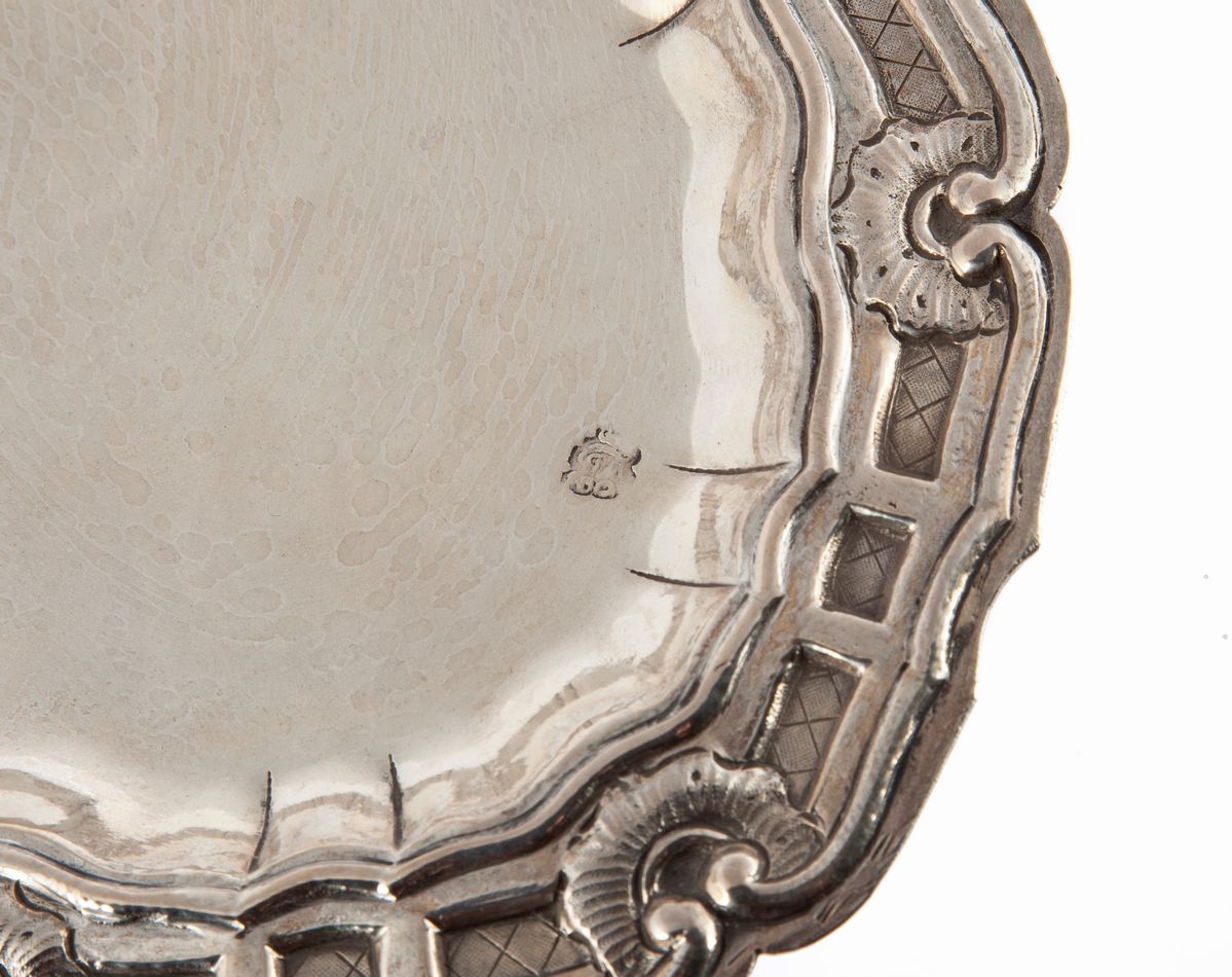Coppia di piccoli vassoi ovali in argento di gusto settecentesco