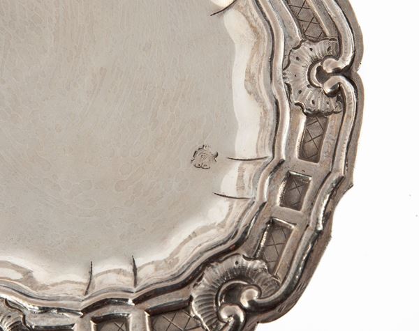 con ampia tesa sagomata caratterizzata da formelle geometriche alternate a motivi rocaille. Bolli di invenzione.