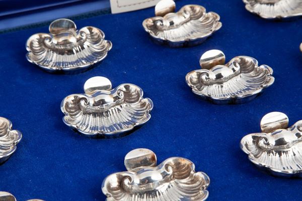 a forma di conchiglia; entro astuccio argenteria Broggi, Roma