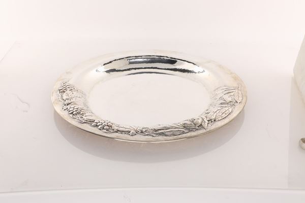 con ampia tesa in parte decorata da tralci d'uva e melagrane sbalzate