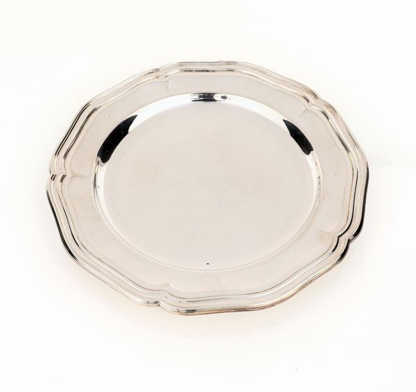 Otto piatti in argento 800/000, Italia, bolli consunti