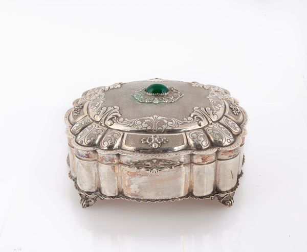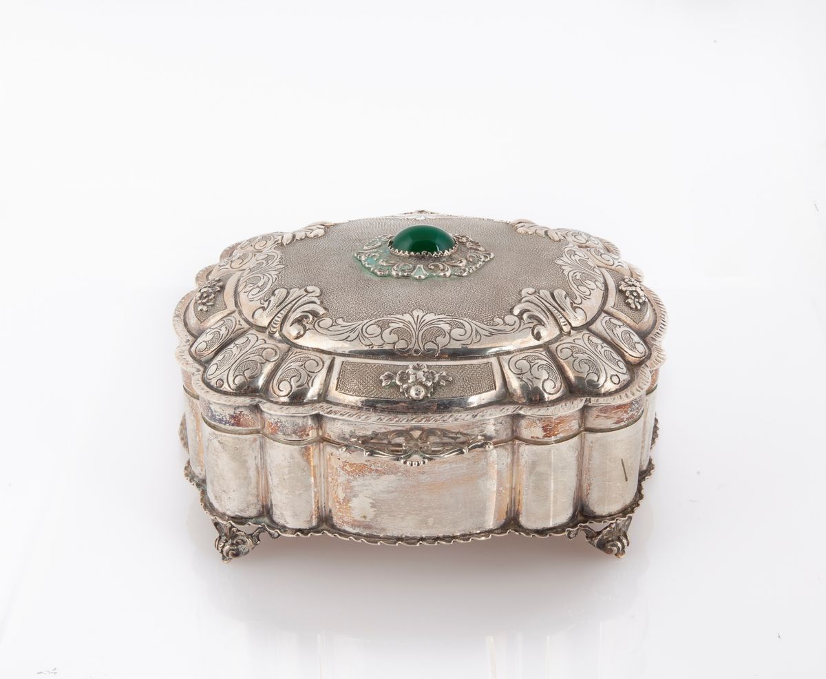 Scatola portagioie in argento 800 con gemma cabochon