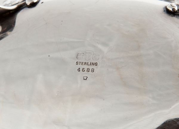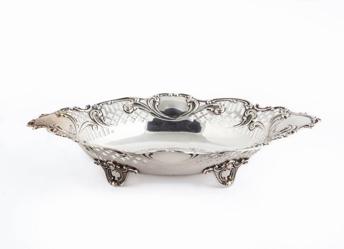iniziali incise nel cavetto e ampia tesa con cartigli traforati definiti da rilievi vegetali; piedi a rocailles