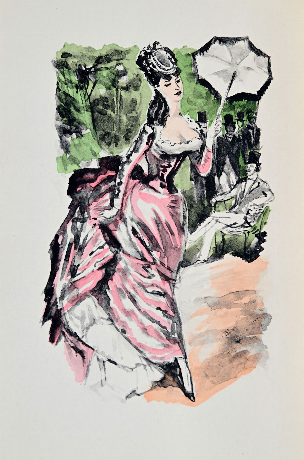 1 vol. mm. 245X165, pp. [8]-115-[7] + 12 tavv. ill. Bross. ed. con titoli al piatto e al dorso, carte libere. Cartella in piena tela con tit. in oro al dorso, astuccio in tela. Con 12 acquerelli di Berthommé Saint André. Edizione numerata a mano (es. 97/405) con iniziali autografe dell’editore.