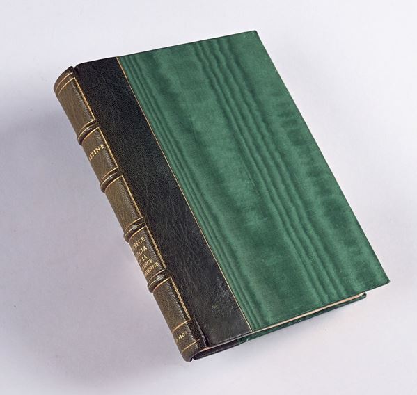 1 vol. mm 190x150, p. [10], 348. Rilegatura artistica in mezzo marocchino pregiato con piatti in seta, dorso con titoli in oro e 4 nervature, risg. marm., brossura rilegata. Edizione originale francese illustrata da E. Zier con incisioni di A. Deloche.