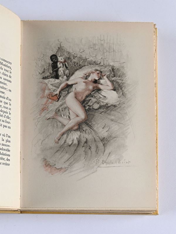 1 vol. mm. 228X165, pp. [6]-IV-212-[2] + 18 tavv. ill. a col. f.t., presenti anche in altrettante tav. in nero dello stesso formato e slegate dal testo. Bross. ed. con titoli a col. al piatto e al dorso, con pergamino protettivo, cartella p. perg. con tit. al dorso e cofanetto. Edizione numerata (es. 110/300) illustrata da P. E. Becat.