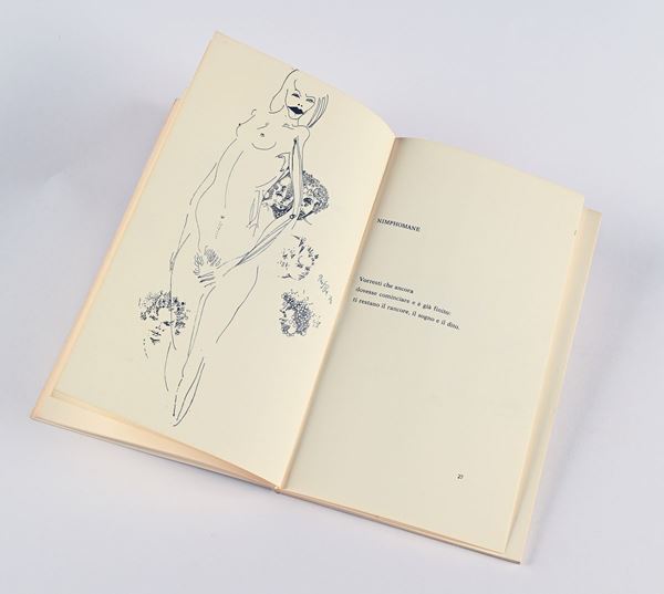 1 vol. Bross. ed. pp. 80-[6], mm 240x145. Edizione non venale numerata e firmata dall’autore, es. LXI di 426 copie (200 in numeri arabi, 200 in numeri romani e 26 in lettere dell’alfabeto). Volume illustrato, tavole a piena pagina con raffinati disegni da chine di Giacomo Mauro Giuffra.