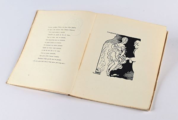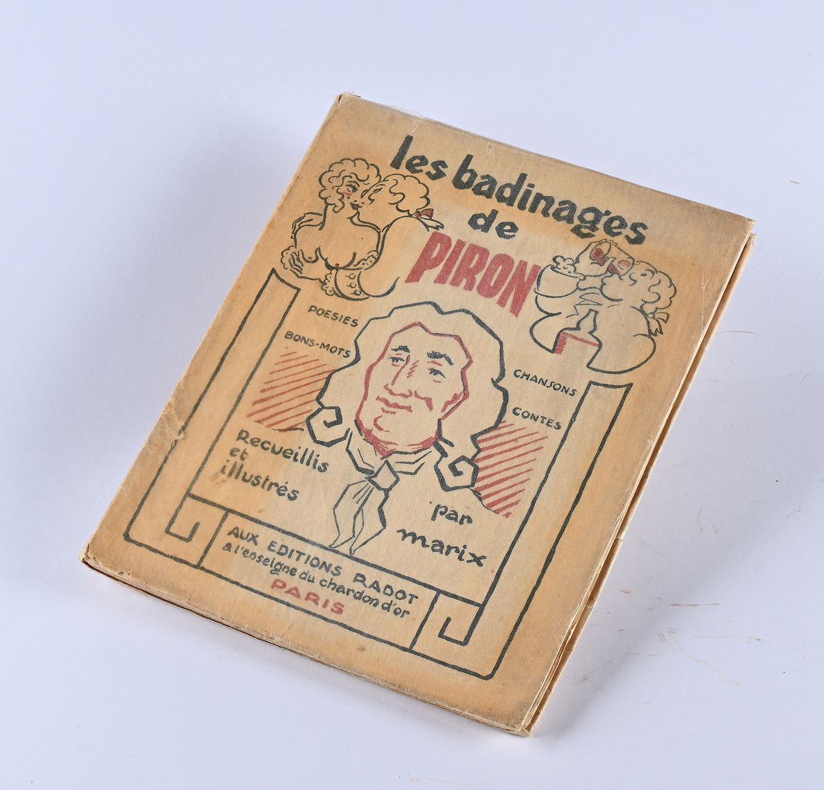 1927, Paris, aux editions Radot a l’enseigne du chardon d’or. mm 280x225. Testo a stampa. 1 vol. Bross. ed. con pergamino protettivo, pp. 111-[3], mm 280x225. Edizione di 1.000 copie numerate, es. n. 232; con 34 litografie erotiche originali di Marix nel testo, front. a col.