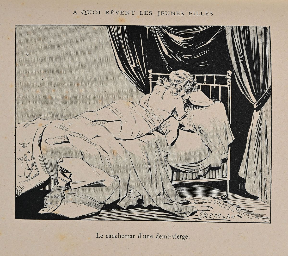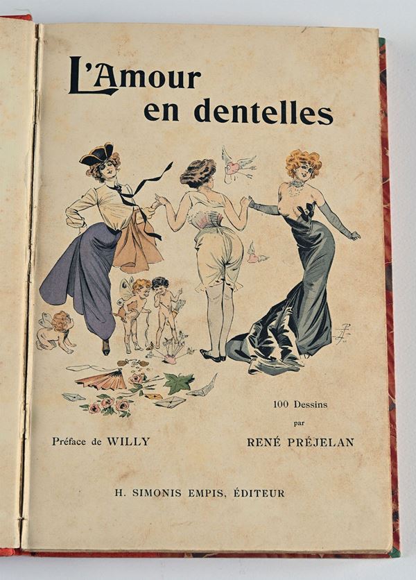 1 vol. mm. 255X172, pp. [4]-4 + 100 cc di tavv. ill. Rilegatura in mz tela, titoli con fregio in oro al dorso, brossura ed. conservata con ill. a col. al piatto. Volume interamente illustrato con disegni di René Préjelan, che ha curato anche l’elegante illustrazione di copertina. Prefazione di Willy. Tiratura di soli 30 esemplari non numerati (20 su carta Giappone e 10 su carta Cina).
