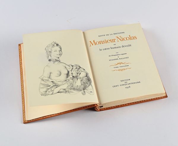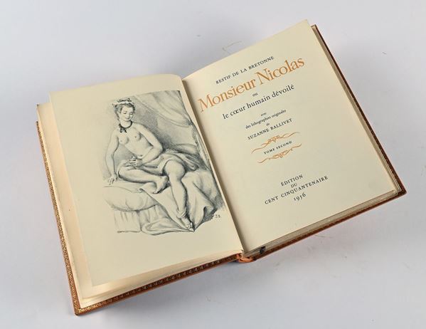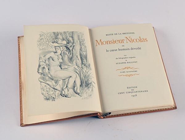 Restif de la Bretonne - Monsieur Nicolas ou le coeur humain dévoilé avec des lithographies originales de Suzanne Ballivet. 4 Volumi, Edition du Cent Cinquantenaire, Parigi 1956-1957