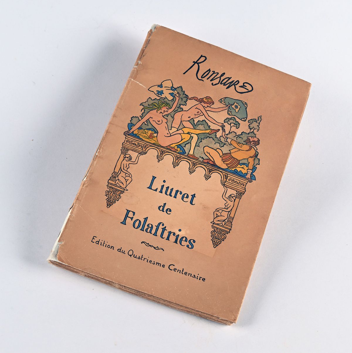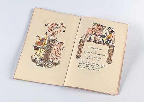 1 vol. mm. 255X160, p. 102, [5], (3). Bross. ed. con sovracop. Illustrata a col. Edizione numerata (es. 653/680) impressa su carta Giappone per il quarto centenario del classico cinquecentesco di Pierre de Ronsard (1524-1585), con le irriverenti e coloratissime illustrazioni di Joseph Hemard a corredare tutte le pagine. Brossura e sovracop. con piccole mancanze e restauri.