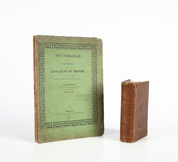 2 libri illustrati del XIX secolo: Joseph Nicolas Masse - Atlante di anotomia Descrittiva del corpo umano. Contenente 112 tavole. Tradotto in italiano da Gennaro Barbarisi ed arricchito di altre 18 tavole. Marcellino dell'Ancora, Napoli 1853; Achille Comte - Physiologie pour les Colleges et Les Genes du Monde. Expliques sur douze planches, Societe Encyclographique Bruxelles 1837.