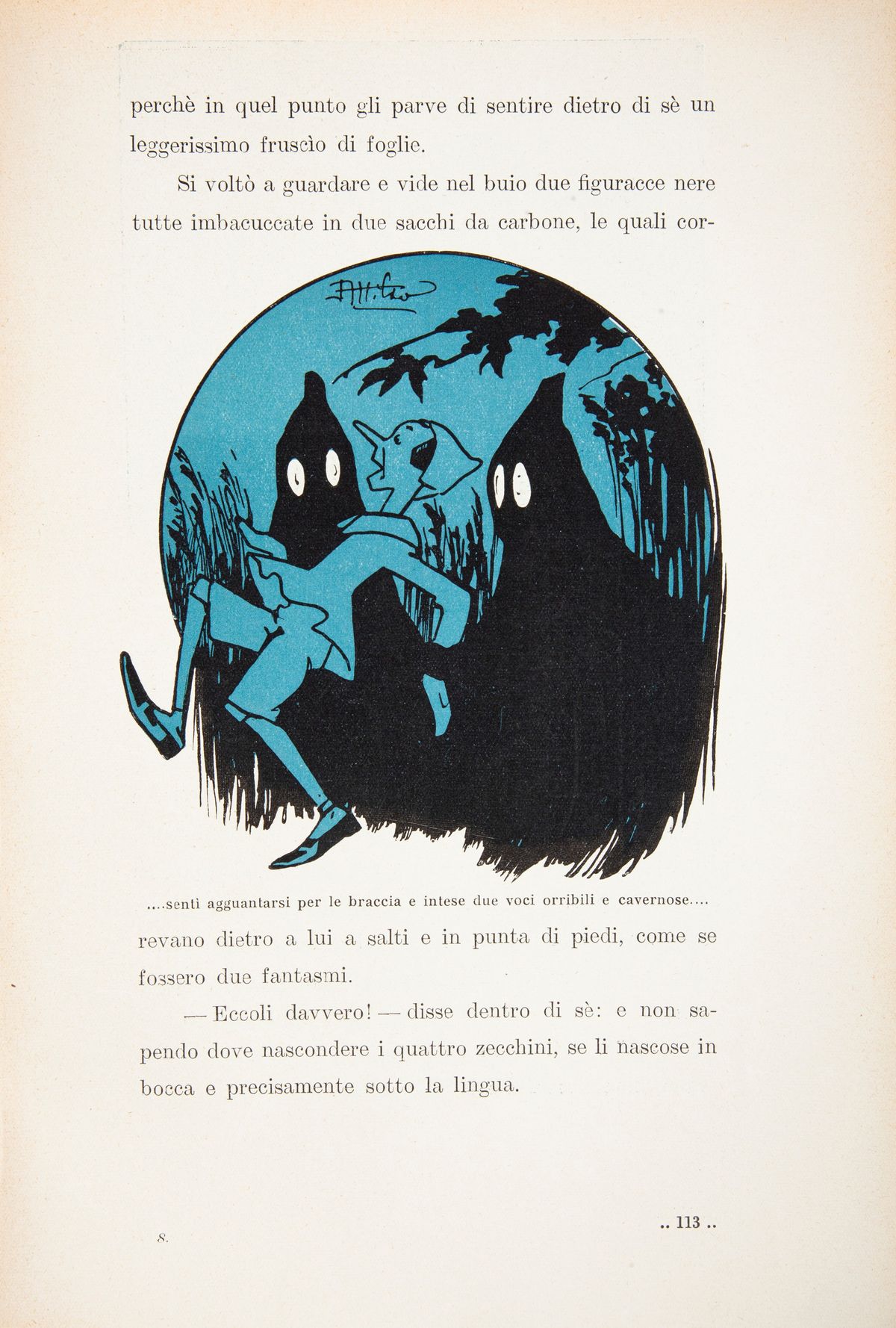 2 libri per ragazzi: Carlo Collodi- Le Avventure di Pinocchio Disegni a colori di Attilio Mussino. Sesta edizione in ottavo, Bemporad & Figlio Firenze 1934; Racconti delle Mille e una Notte, Versione di Arturo Jahn Rusconi, con illustrazioni di Edmondo Dulac, Istituto Italiano di Arti Grafiche, Bergamo 1924