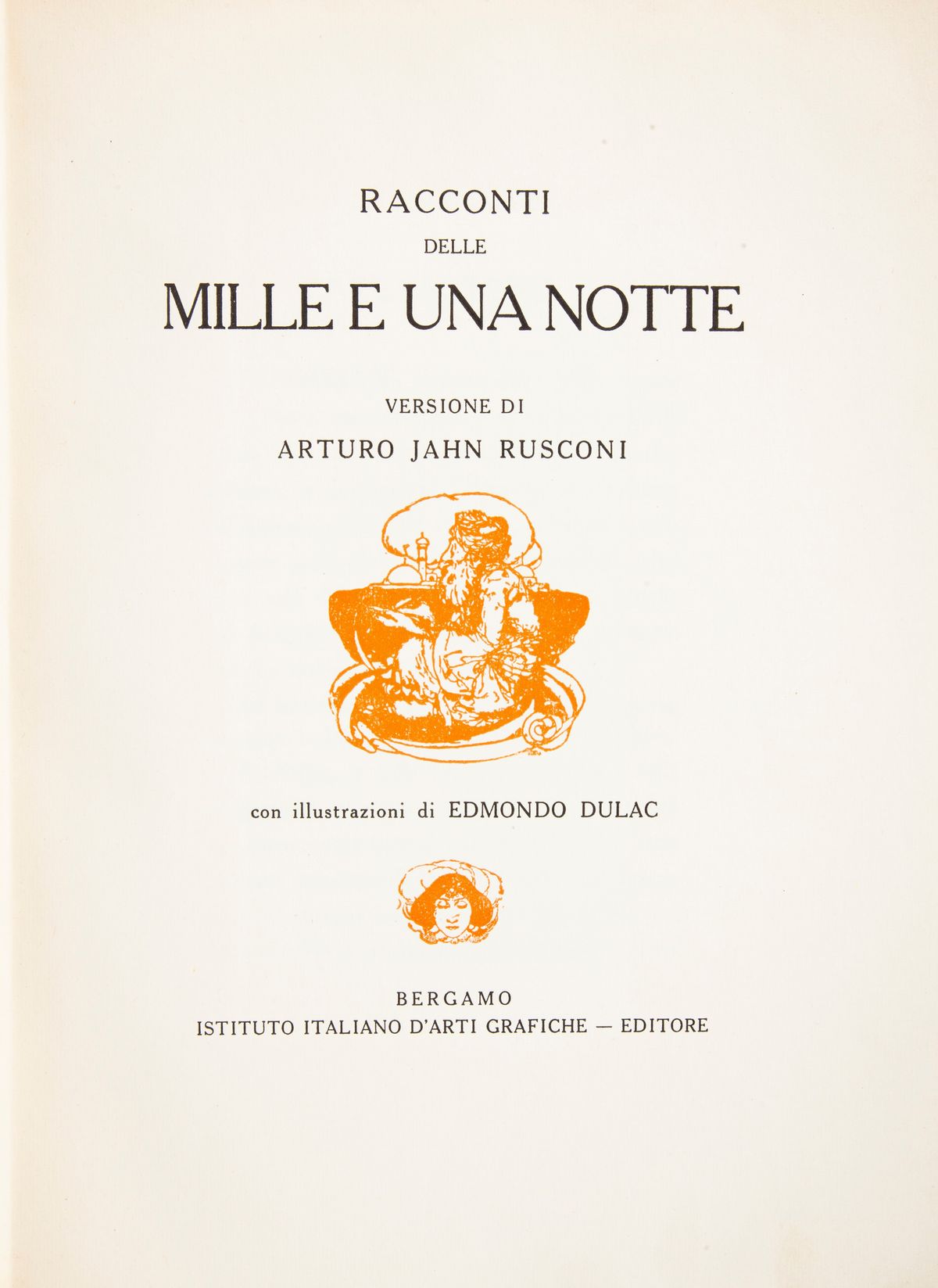 Legature editoriali originali illustrate. Le Mille e una Notte con taglio superiore dorato.