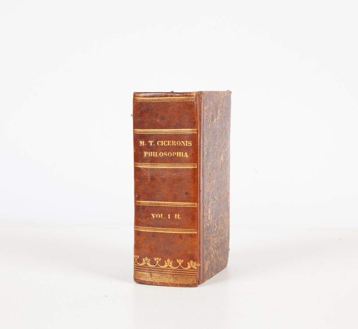 In 8° Due parti con frontespizi autonomi (mancante il primo della prima parte), con le Tuscolane che editorialmente sono parte integrante della prima parte anch'esse munite di autonomo frontespizio. Ancore aldine ai frontespizi e in fine. Non comune riedizione delle opere di Cicerone già stampate nel 1546. Legatura del XIX secolo in mezza pelle con titolo in oro al dorso.