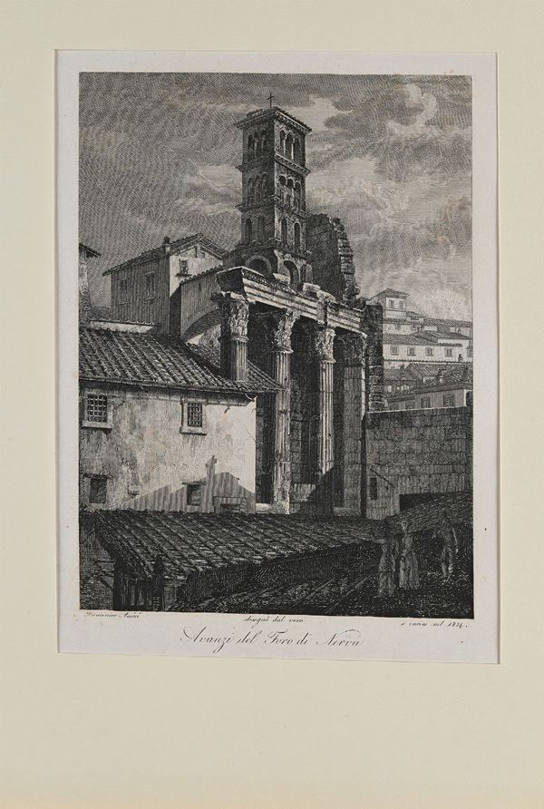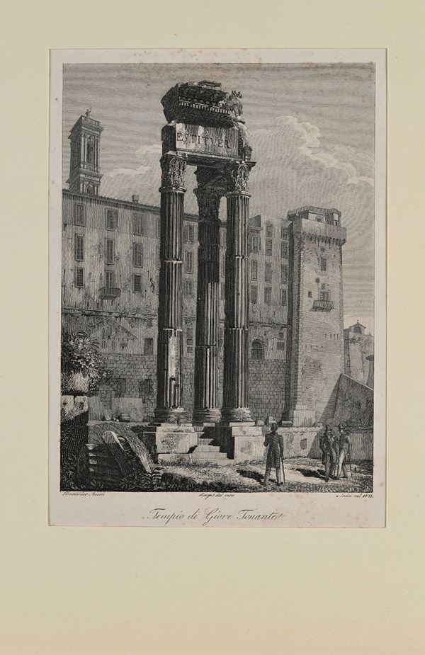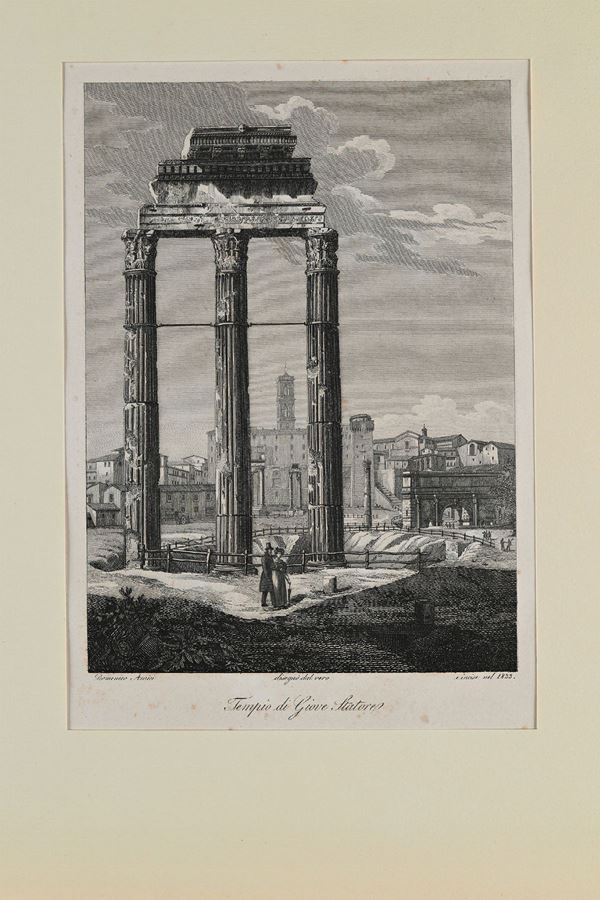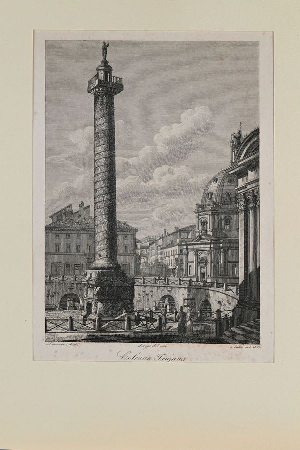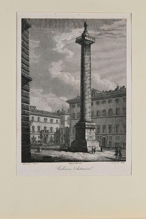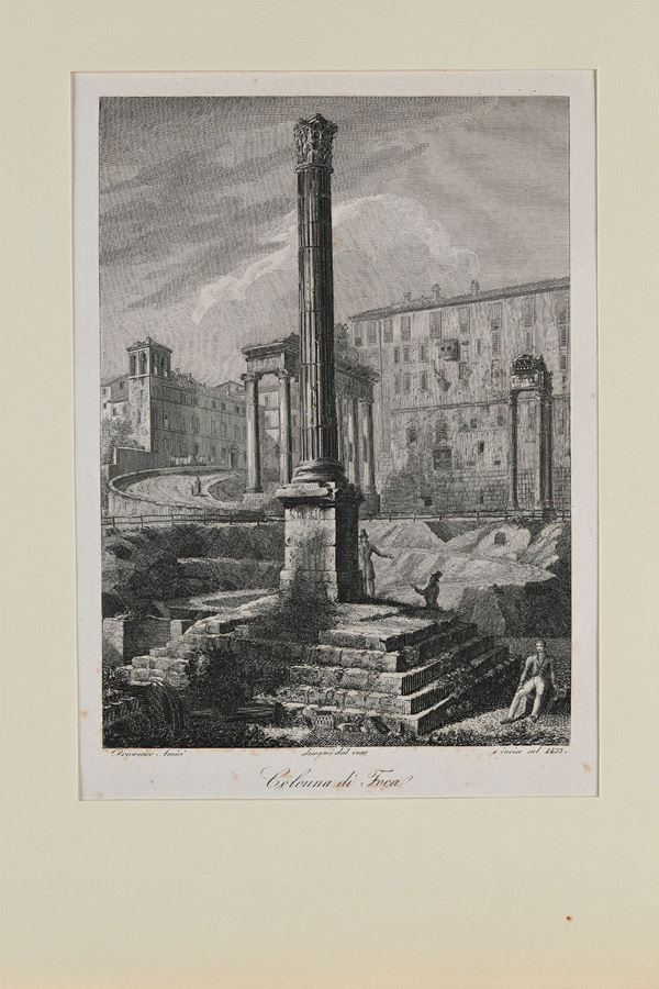Domenico Amici - 8 Vedute di Roma: Colonna Antonina, Colonna Traiana, Obelisco Flaminio del Popolo, Fontana dell'Acqua Paola, Tempio di Giove Tonante, Tempio di Giove Statore, Avanzi del Foro di Nerva e Colonna di Foca., 1833-1840