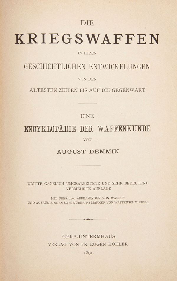 August Demmin - Die Kriegswaffen in ihren Geschichtlichen Entwickelungen, Kohler, Gera Untermhaus 1891