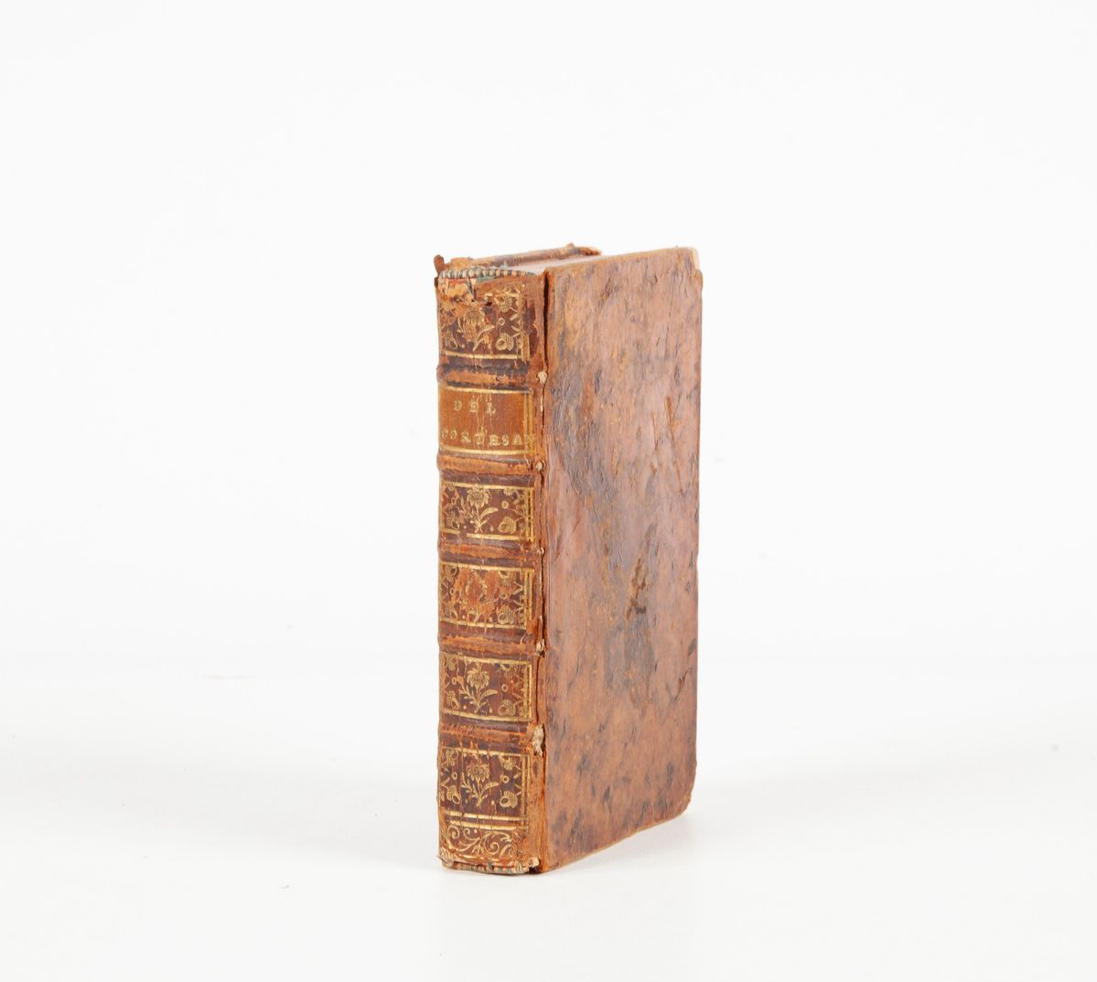 In 8° Prologo di Garcilaso de la Vega. Il libro del Cortegiano di Baldassarre Castiglione, pubblicato nel 1528, fu di grande attualità sia nel contesto europeo sia in quello italiano. Il testo della vulgata fu il risultato di un processo di scrittura e riscrittura durato molti anni, attestato da cinque manoscritti in cui si riscontrano varianti significative della versione definitiva, risultato di una sorta di autocensura, che dimostrano che l’autore fu costretto ad adattarsi al clima spirituale della sua epoca. In Spagna il testo si diffuse all’inizio in lingua originale; la versione in castigliano del 1534, tradotta da Juan Boscán, fu la prima in lingua straniera. La storia della censura del libro in Italia, inizia nel 1576 quando Camillo Castiglione, figlio di Baldassarre, chiese alla Congregazione dell’Indice la licenza per pubblicare una versione emendata dell’opera del padre. Dopo molti anni, nel 1584, ne verrà stampata una versione riveduta e corretta dal teologo Antonio Ciccarelli. In Spagna si ebbero numerosi interventi espurgatori nelle edizioni che circolarono tra il 1534 e il 1581. Legatura seicentesca in vitello spruzzato con titolo e fregi in oro al dorso. Tagli rubricati.