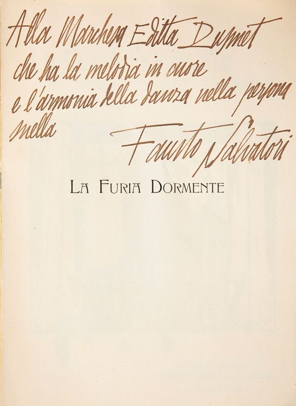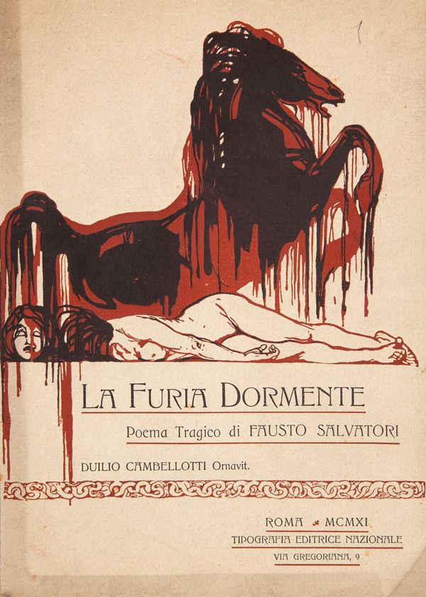 Fausto Salvatori - La Furia Dormiente Poema tragico. Duilio Cambellotti ornavit, Tipografia Editrice Nazionale, Roma 1911