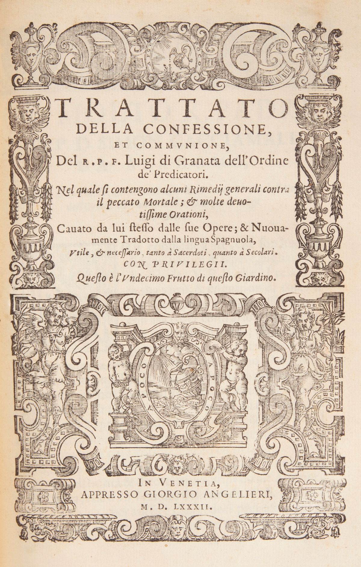 Fra' Luigi di Granada - La Quarta parte della Meditazione; Della Guida overo Scorta de' Peccatori (Libro Primo e Libro Secondo); Trattato della Confessione et Communione; Unito: Francesco d'Evia - Breve Confessionario, Giorgio Angelieri, Venezia 1582