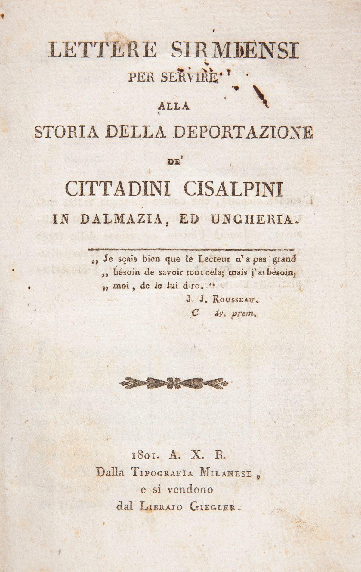 Francesco Apostoli - Lettere sirmiensi per servire alla storia della deportazione de' cittadini cisalpini in Dalmazia ed Ungheria, Tipografia Milanese, Milano 1801