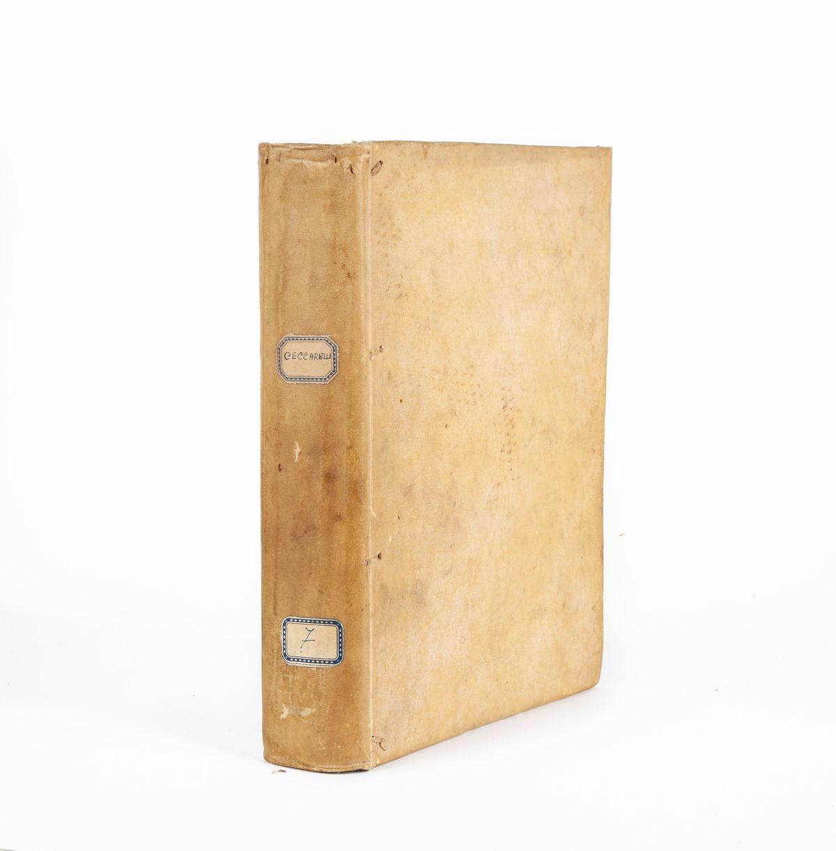 Nuova edizione dell'importante farmacopea in latino e volgare finanziata ed edita dal Collegio dei Medici di Roma allo scopo di ordinare l'eccezionale varietà di rimedi della medicina cinquecentesca, ispirato agli stessi principi dell'Antidotario Senese. Nell'opera sono descritti migliaia di rimedi e medicamenti con ricette per vari preparati: composti aromatici, conserve, spezie, unguenti, sciroppi, decotti, olii. Si tratta anche della Theriaca romana e egiziana, ricetta di un antidoto salvavita che si tramandò per secoli. Legatura antica in piena pergamena di riuso. Restauro al frontespizio e alle prime 6 pagine.