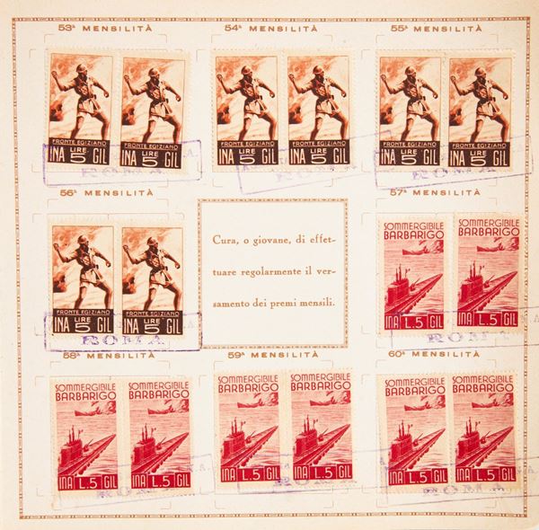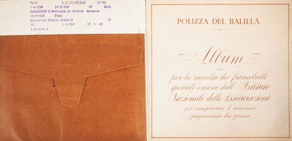 Istituto Nazionale Delle Assicurazioni - Polizza del Balilla 1938. Completa di Polizza ed album con francobolli
