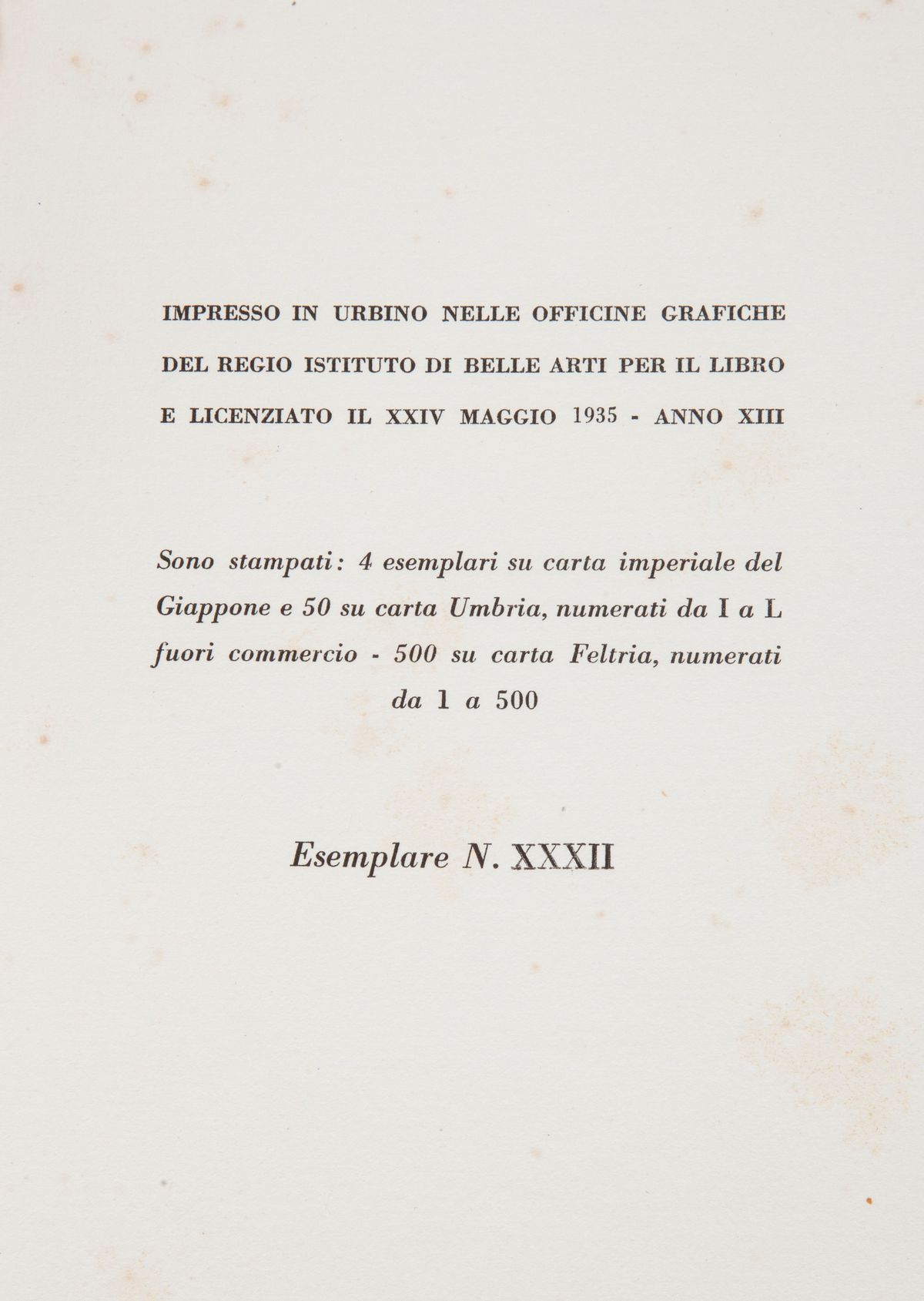 Tiratura limitata in Carta Umbria numerati da I a L, ns. esemplare n. XXXII. Copertine originali in tela. L'autore, ufficiale di fanteria durante la Grande Guerra, affiancò la sua attività di recuperi ed arditi salvataggi navali nel Mediterraneo a quella di poeta e scrittore, con l'adesione al Fascismo ne fu cantore con quest'opera di chiara poesia civile, coll’antologia Roma nel pensiero e nel sentimento degli Italiani da Dante a Mussolini (Maastricht 1934) e nel libello Britannia e Roma, edito a Genova nel 1936 in contemporanea con Stambul ed altri paesi. Finita la Seconda Guerra Mondiale di dedicò alla traduzione e continuò l'attività di poeta e lirico in sodalizio con Vincenzo Cardarelli, Angelo Barile e Camillo Sbarbaro.
