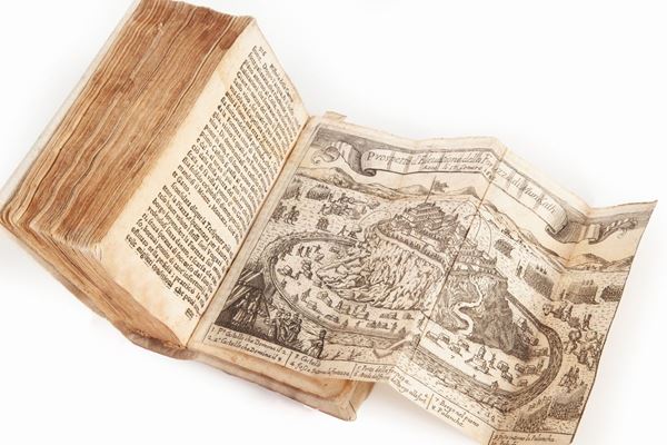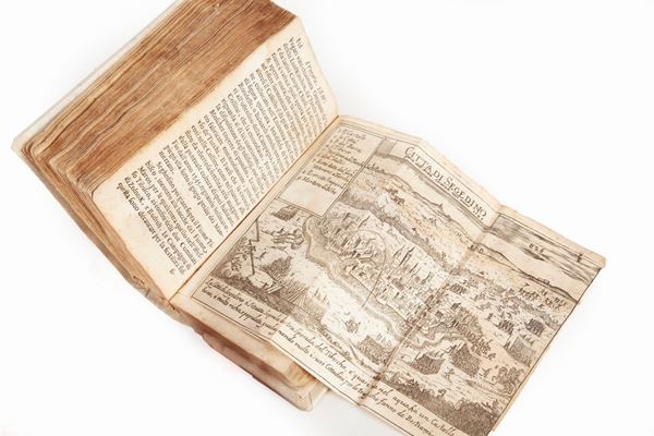 In 12° Illustrato con 8 ritratti a stampa a piena pagina dei regnanti e dei comandanti delle piazze coinvolte negli eventi e 10 vedute a stampa a piena pagina e più volte ripiegate delle piazze coinvolte (restauri e piccoli strappi). Legatura in piena pergamena del XX secolo con tassello in pelle con titolo in oro al dorso.