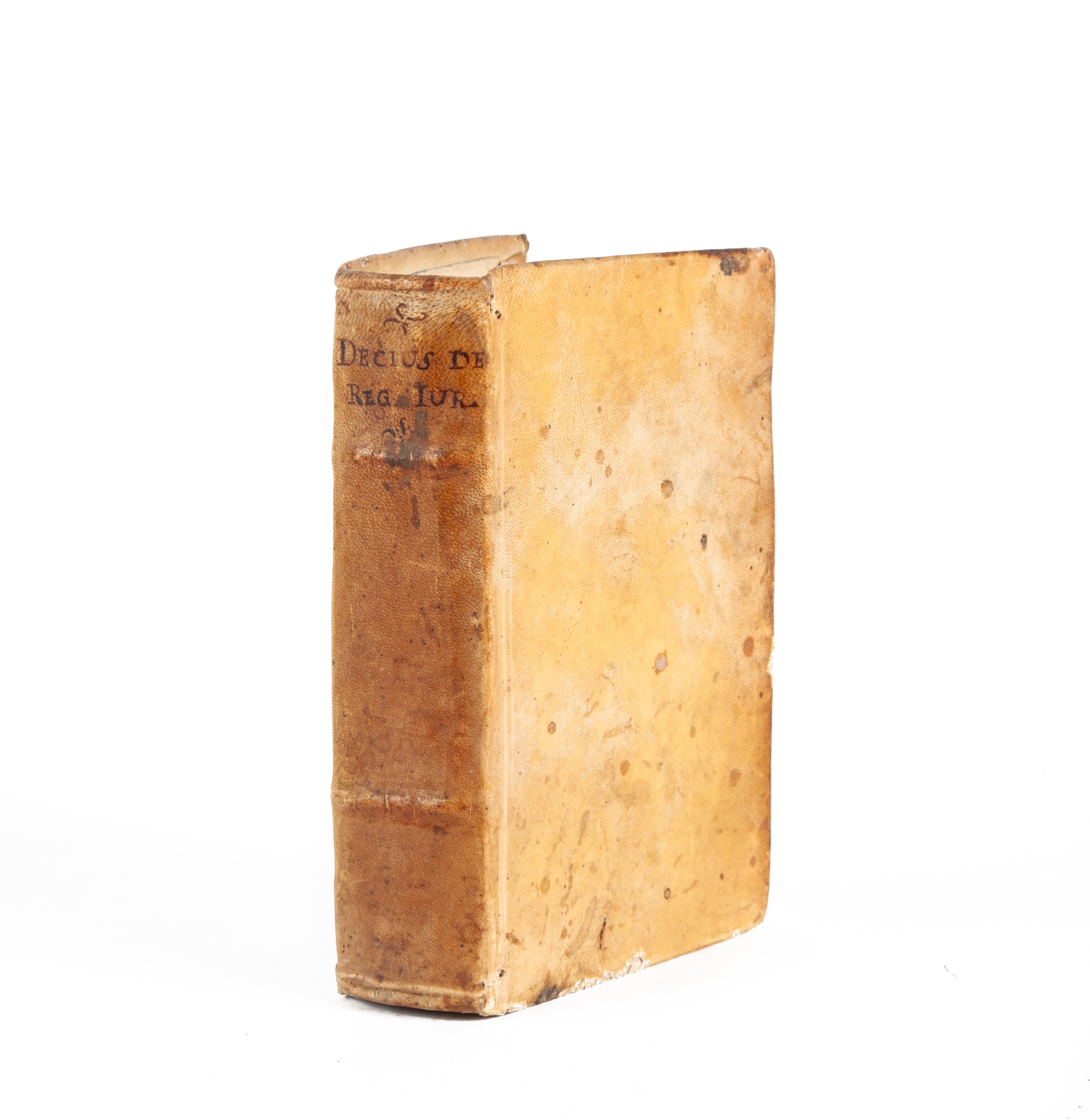 In 8°. Commentari del celebre umanista, civilista e canonista Filippo Decio (1454-1535), insegnante a Pisa, Pavia, Siena, Padova e Roma. Ebbe come discepoli papa Leone X e Francesco Guicciardini. Le sue Regole di diritto civile rappresentarono un punto di riferimento non solo per la dottrina strettamente giuridica, ma divennero ben presto modello per chi al diritto s'avvicinava senza spirito tecnicista ma piuttosto con finalità politiche. Legatura in piena pergamena del XVIII secolo con 2 nervi e titolo manoscritto al dorso. Tagli di colore verde. Slegato.