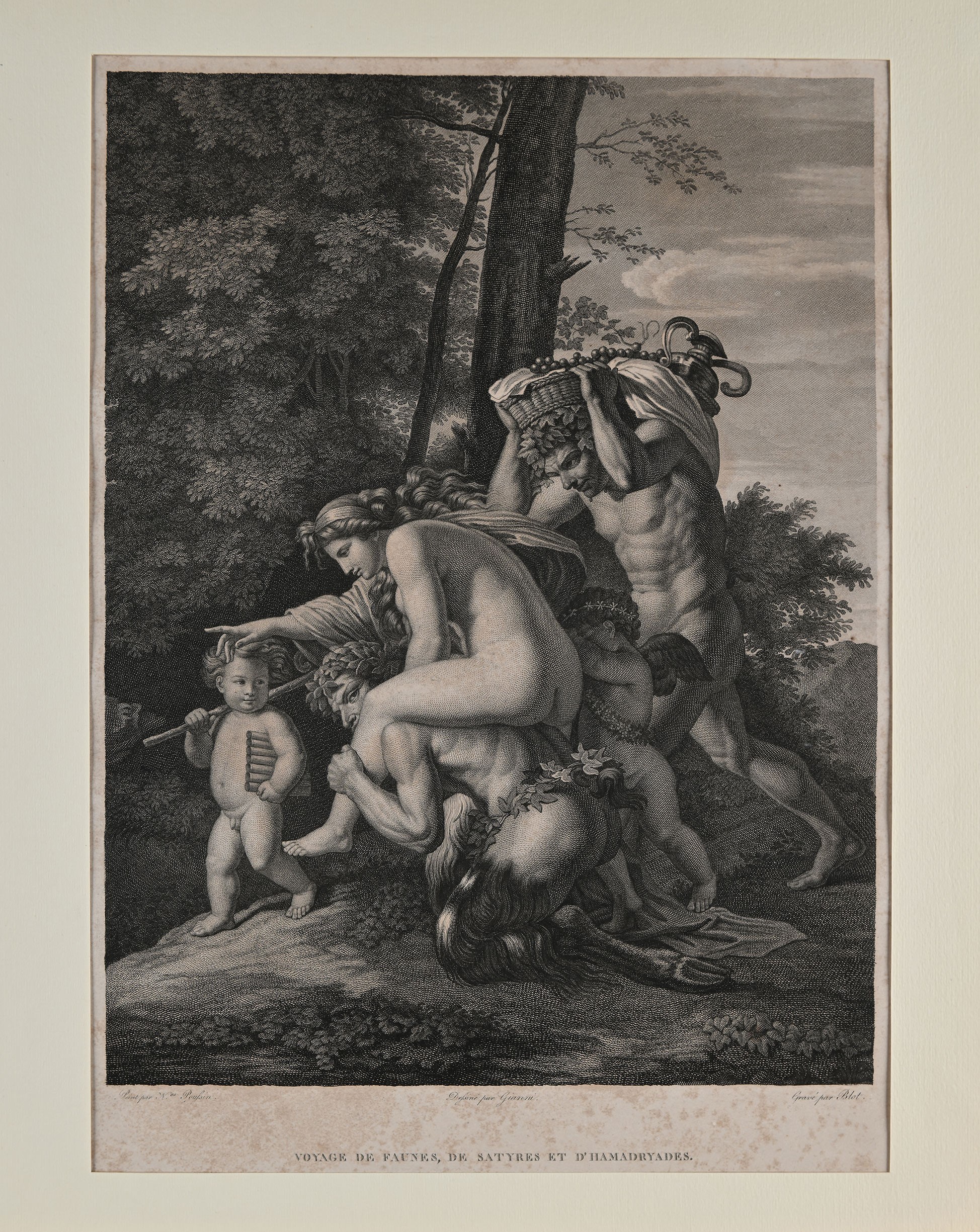 Lotto di Tre incisioni: Peint par N.as Poussin, Gravé par Blot - Voyage de faunes, de satyres et d'hamadryades, post 1800 - ante 1815