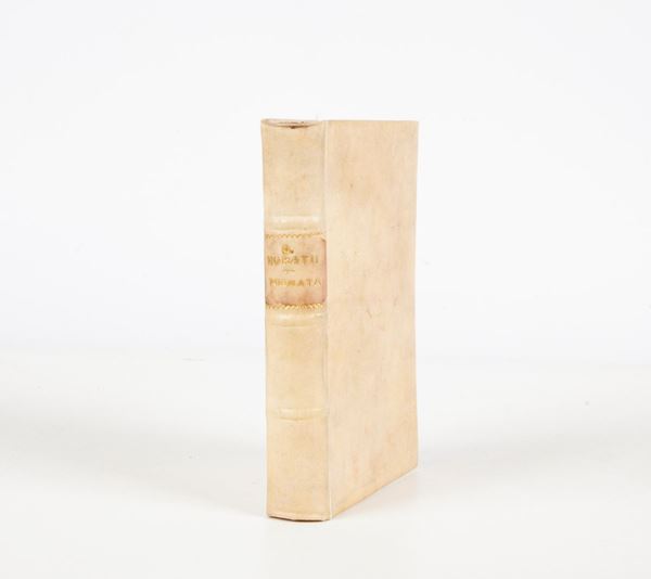 In 12° Legatura in piena pergamena a 3 nervi del XX secolo con titolo in oro al dorso. Restauri professionali ad alcune carte. Numerose annotazioni e chiose ad inchiostro che non ledono il testo.