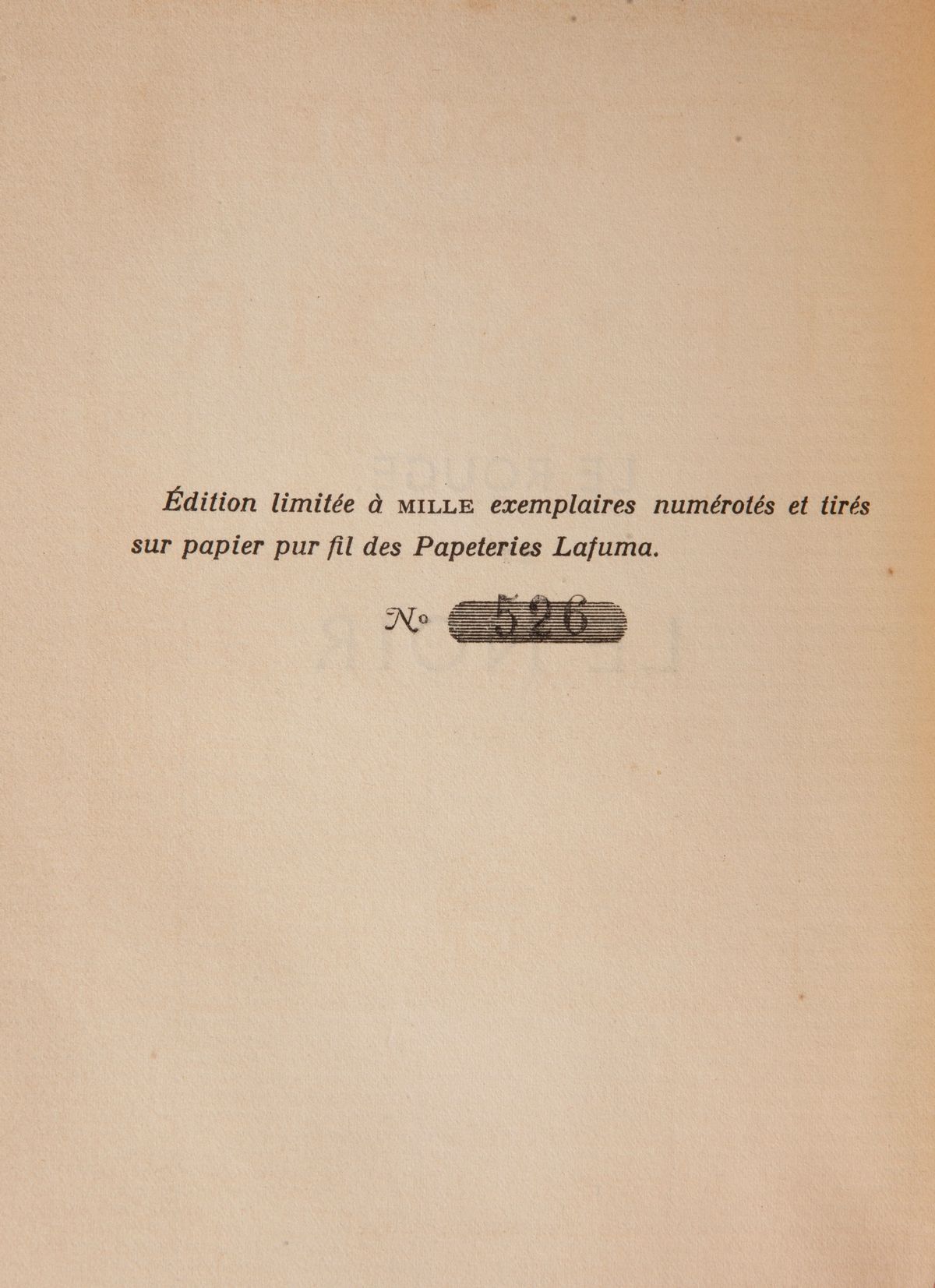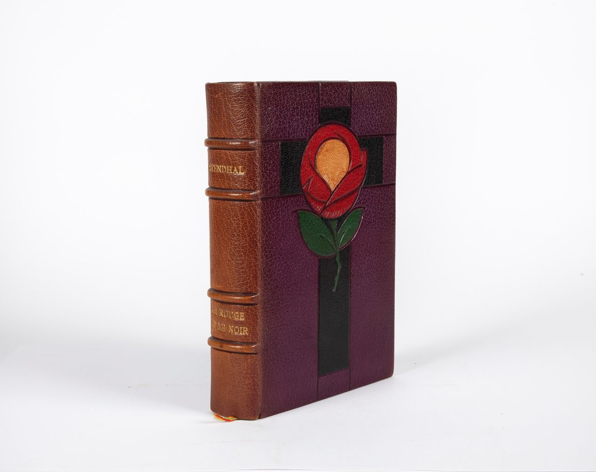 Edizione a tiratura limitata della "Collection SELECTA des Classiques Garnier" a mille esemplari su carta "pur fil des Papeteries Lafuma", ns esemplare n.526. Con acquaforte raffigurante Stendhal dedicata al celebre pittore ed illustratore francese Robert Bonfils. Conservate le copertine figurate originali. Splendida e lussuosa legatura artistica novecentesca in pelle a più colori con 4 nervi, piatti illustrati con rose e titolo in oro al dorso, sguardie in seta, taglio superiore in oro.