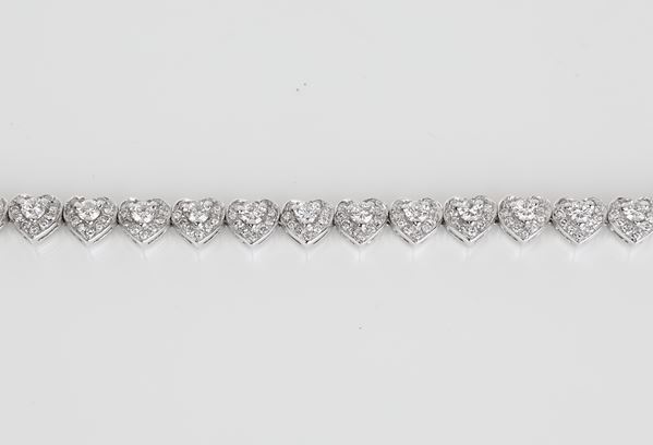 Oro bianco 750/000. Diamanti taglio rotondo brillante ct 2,90 ca. G, VS. Peso complessivo gr 17,50.