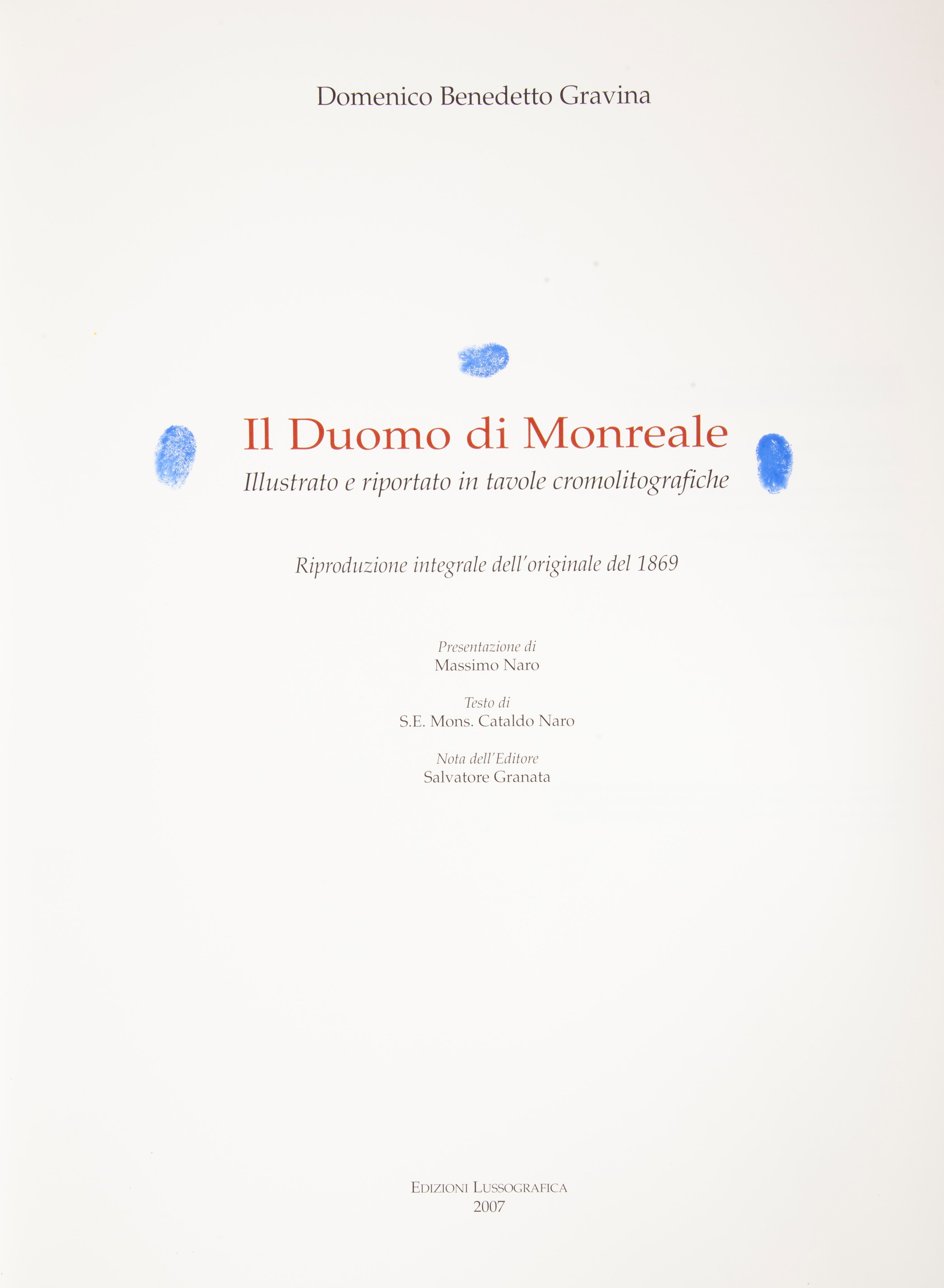 Domenico Benedetto Gravina - Il Duomo di Monreale Illustrato e riportato in tavole cromolitografiche. Riproduzione integrale dell'originale del 1869, Lussografica, Caltanissetta 2007