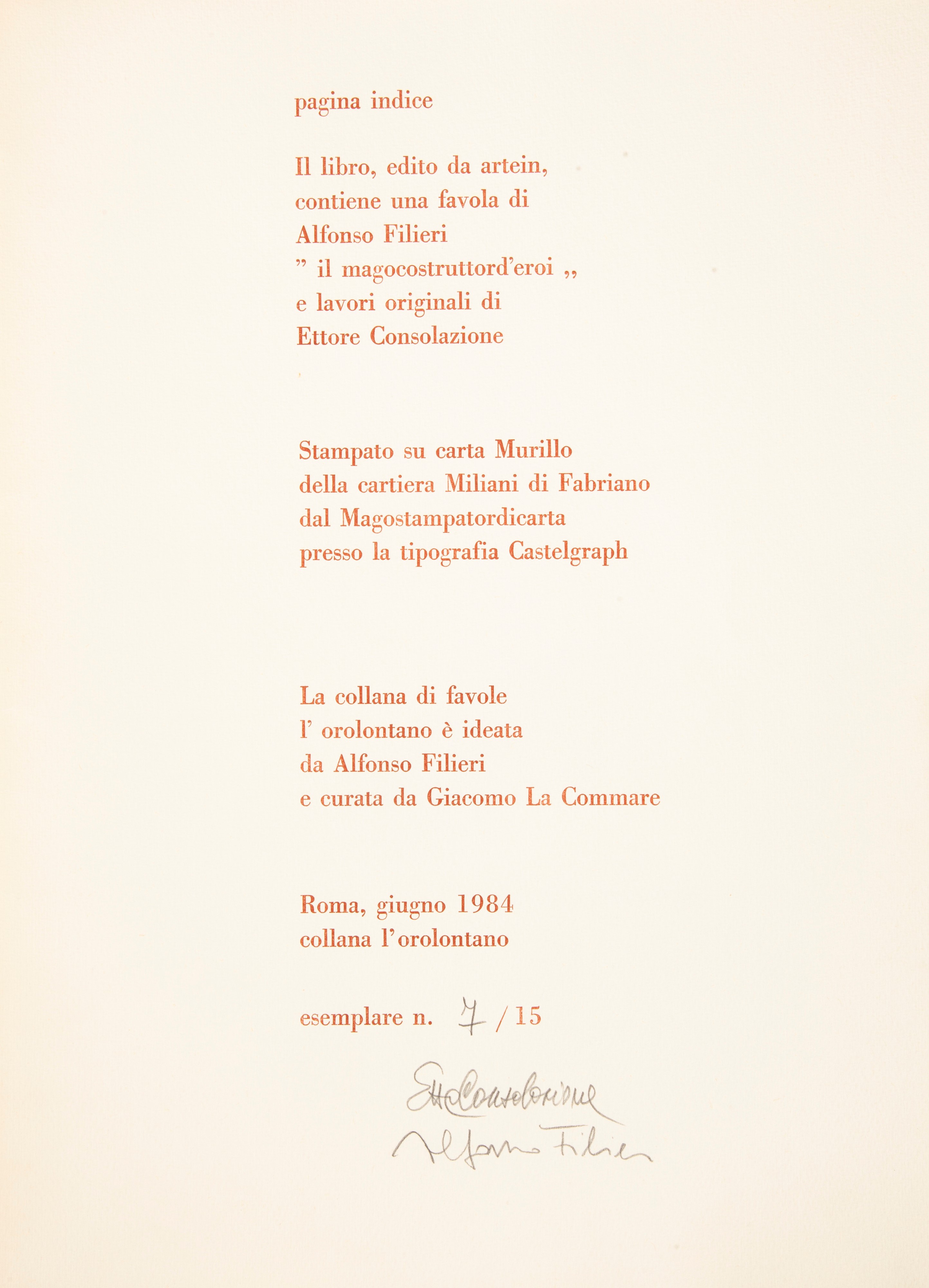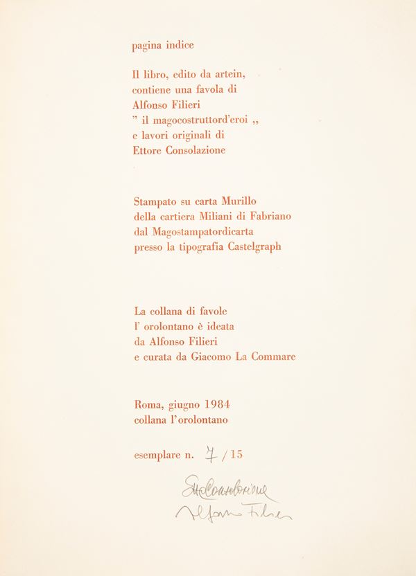 Il Magocostruttord'eroi Favola di Alfonso Filieri Immagini di Ettore Consolazione Esemplare 7 di 15, Artein, Roma 1984