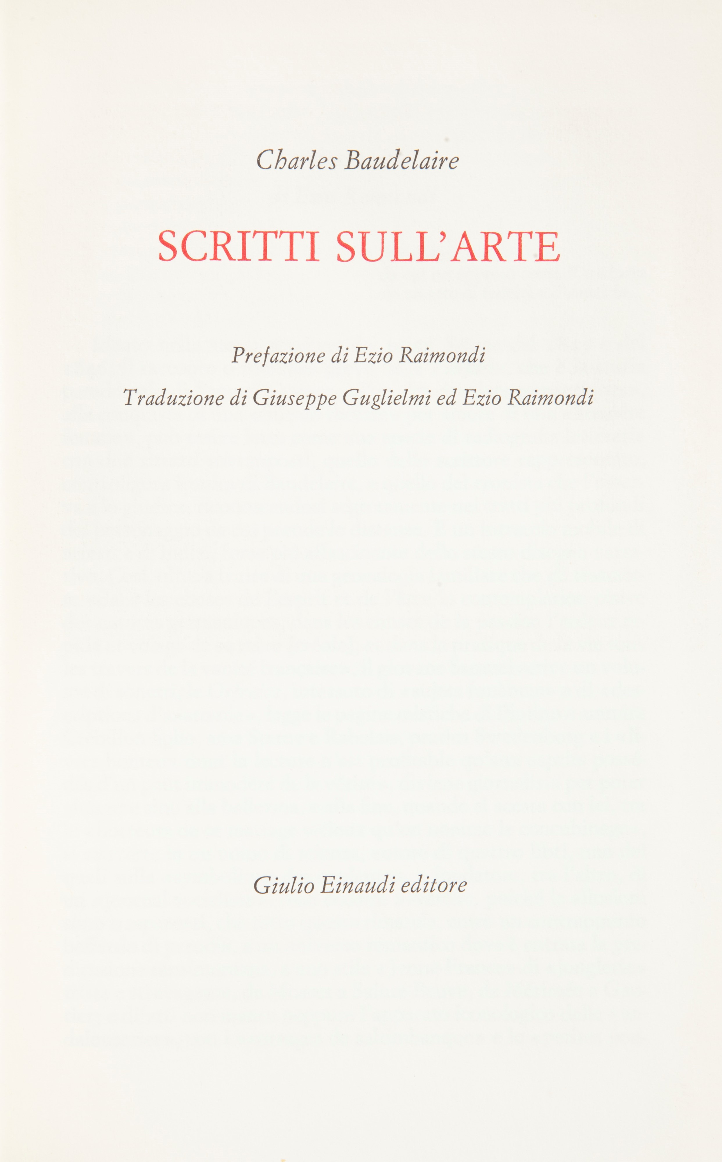 Lotto di 2 Millenni e 3 Saggi Einaudi sull'Arte: Baudelaire - Scritti sull'arte; Bellori - Le vite de' pittori scultori e architetti moderni; Delacroix - Diario, 2 Volumi; Brandi - Disegno della pittura italiana; Faeti - Guardare le figure, Einaudi, Torino