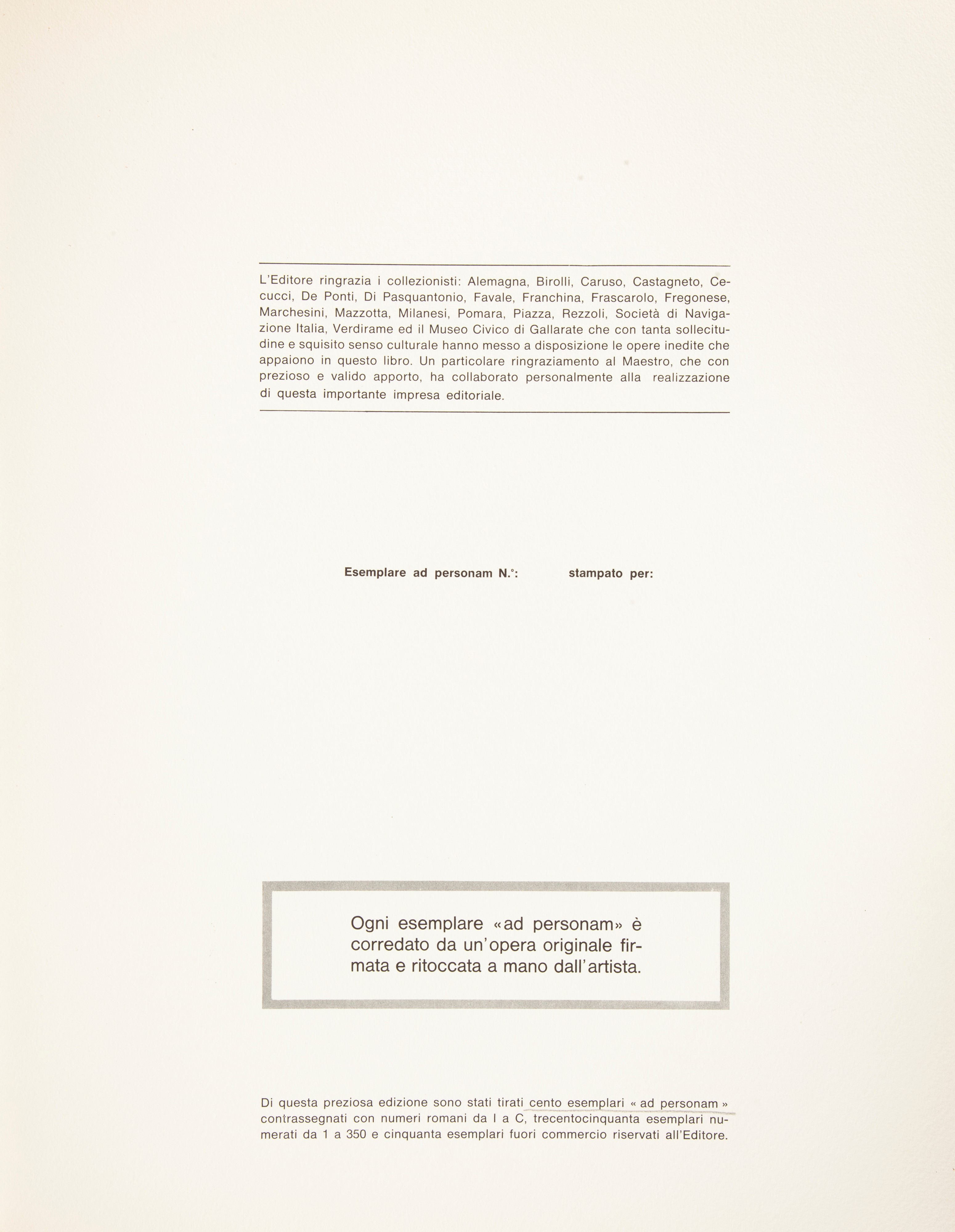 Edizione in tiratura limitata a 350 Esemplari, ns esemplare non numerato. 30 tavole illustrate raffiguranti opere del Maestro Giuseppe Migneco con descrizione e protette da veline. E' presente una sezione iconografica con 50 fotografie in b&n. Legatura in piena pelle con titoli in oro.