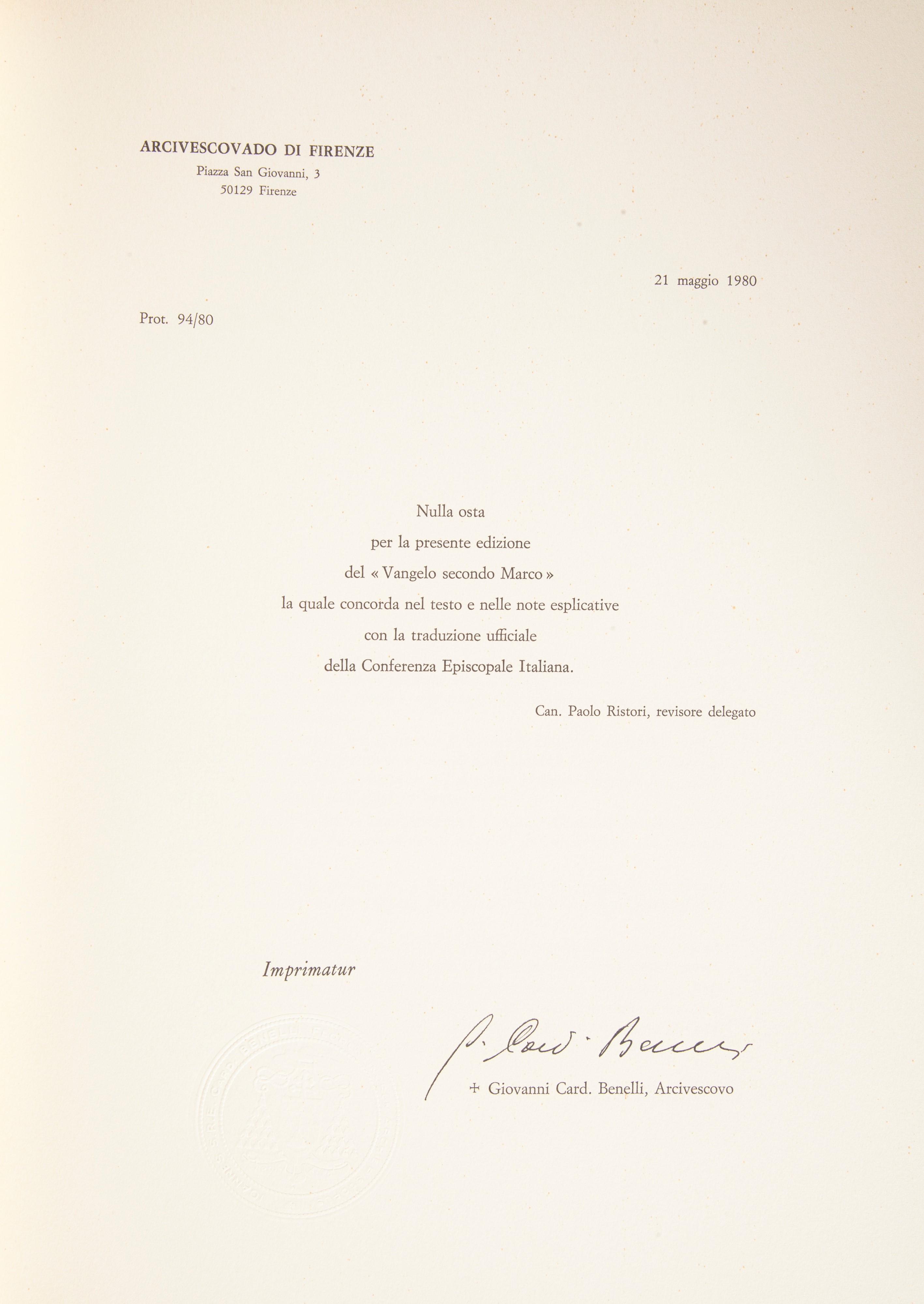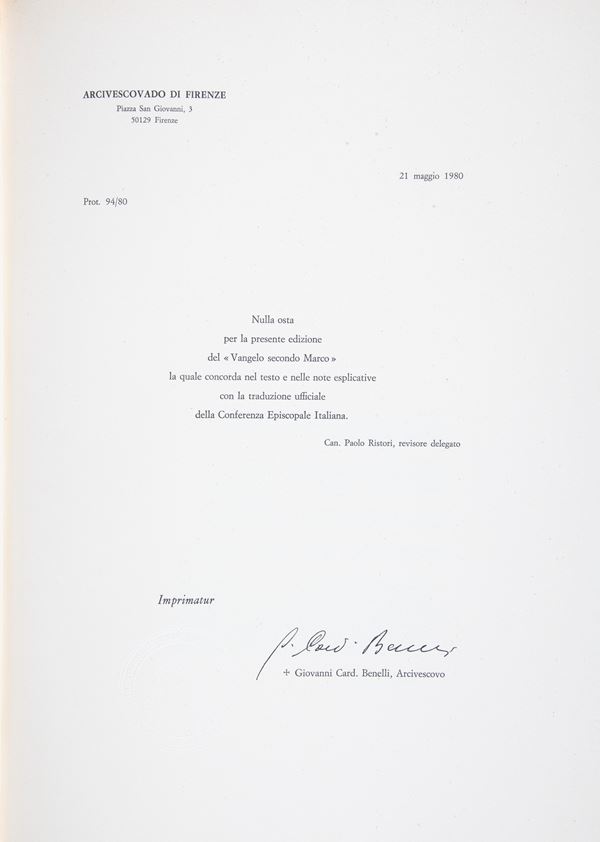 Vangelo secondo Marco con 15 tavole di Aligi Sassu, FIN. EDIT. ART. Firenze 1980