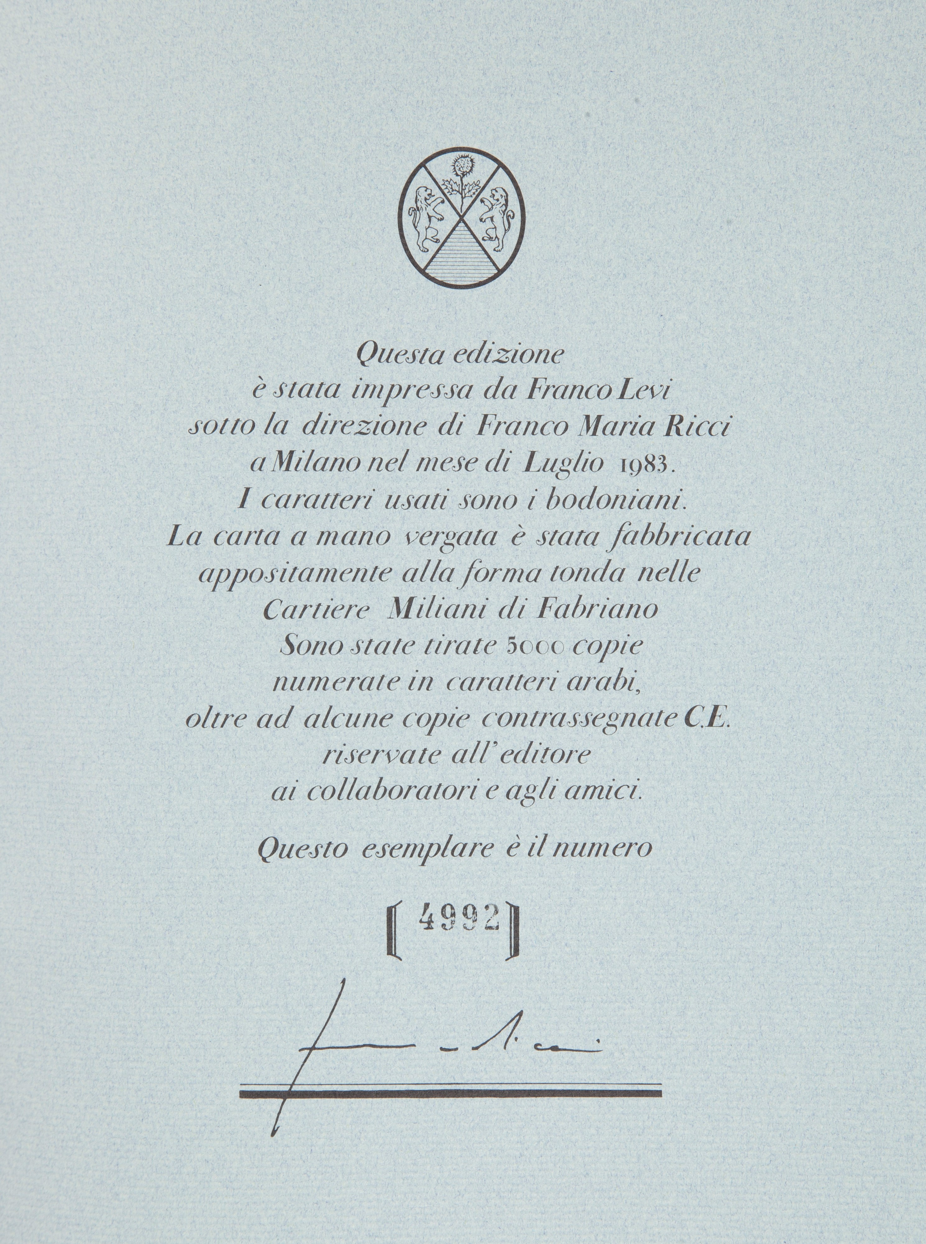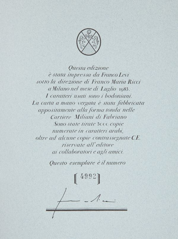 leg.ed. In tela illustrata. Con cofanetto rigido in cartone e seta , 202 pp. Esemplare numerato e firmato