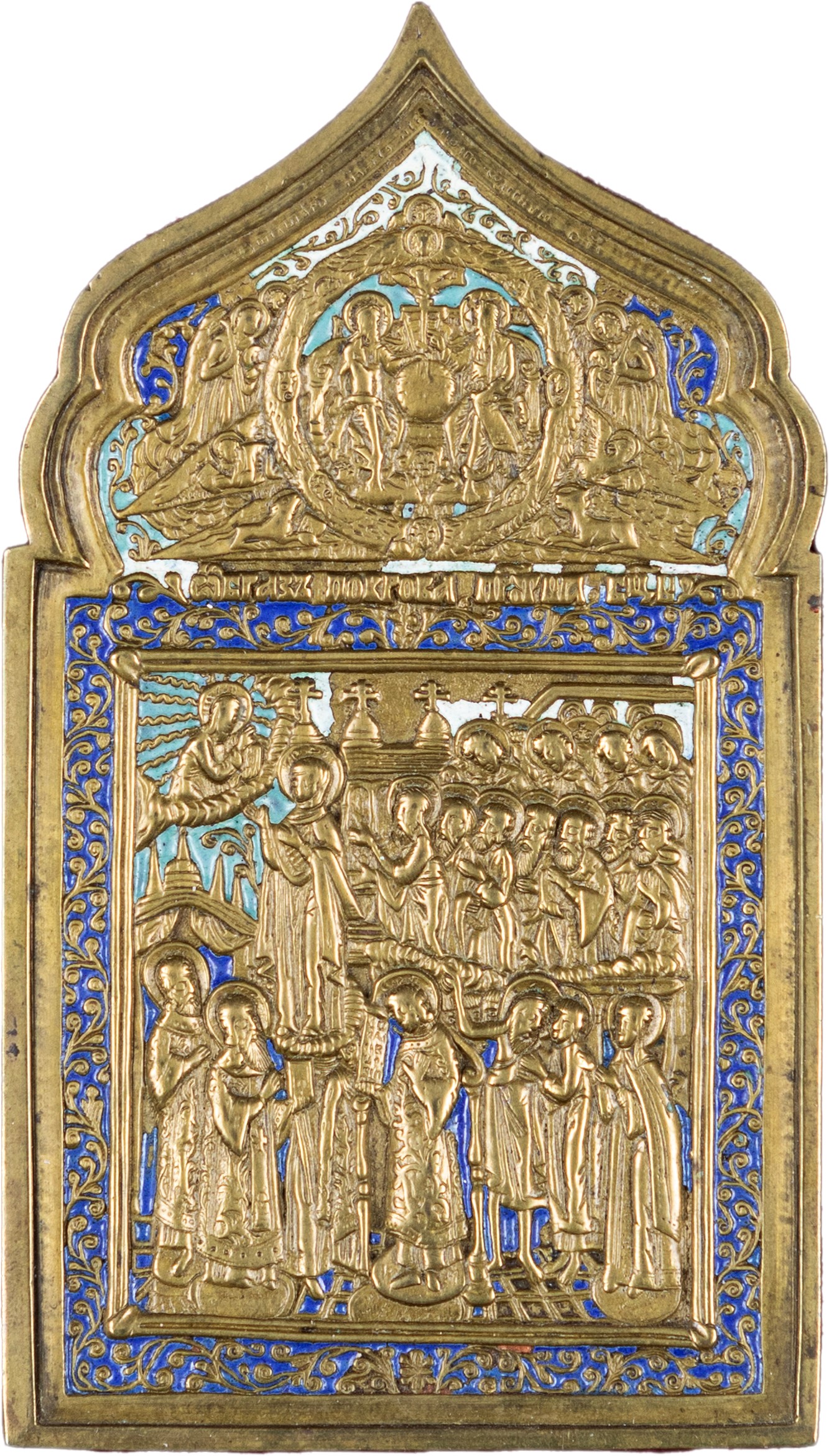 Icona in bronzo dorato e smalti, Russia, XIX secolo